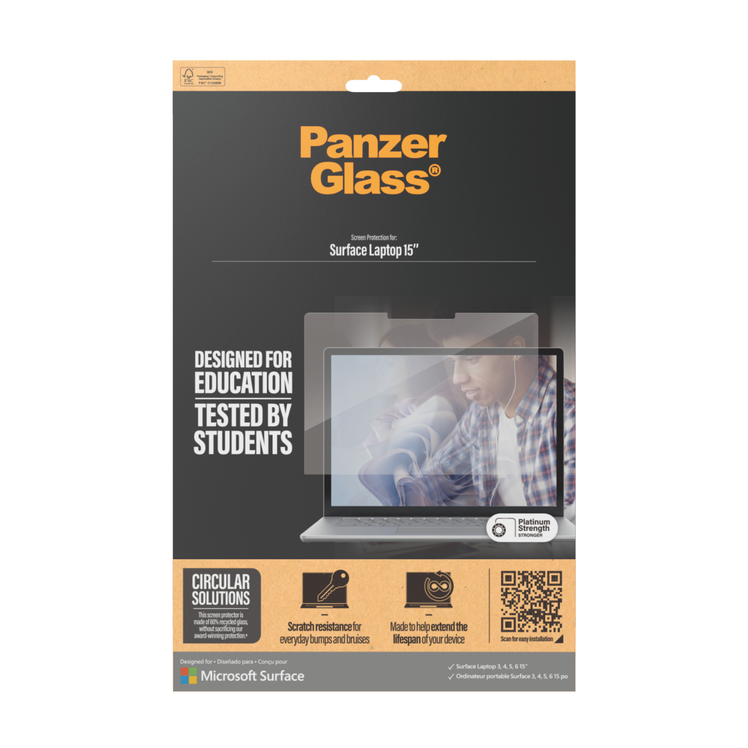 PanzerGlass ® Screen Protector Microsoft Surface Laptop 15" | 6 | 5 | 4 | 3, Microsoft, Microsoft - Surface Laptop 6 15", Microsoft - Surface Laptop 5 15'', Microsoft - Surface Laptop 4..., Application à sec, Résistant aux rayures, Résistant aux chocs, Tr