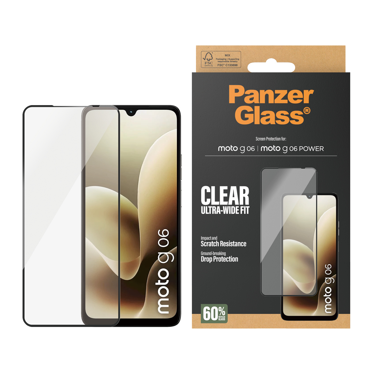 PanzerGlass ® Screen Protector Motorola Moto G06 | Moto G06 POWER | Ultra-Wide Fit, Motorola, Motorola - Moto G06 4G, Motorola - Moto G06 Power 4G, Application à sec, Résistant aux rayures, Résistant aux chocs, Transparent, 1 pièce(s)