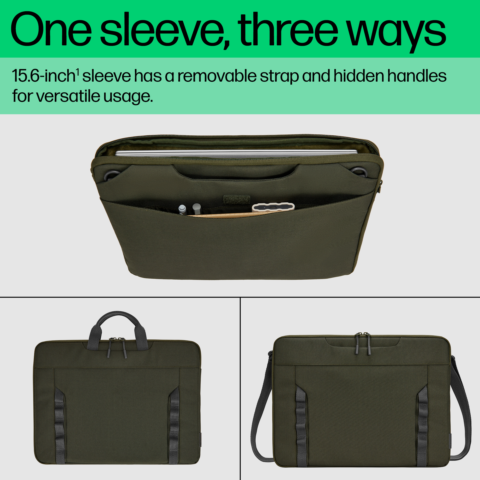 Prenez seulement ce dont vous avez besoin avec vous. Cette pochette durable et légère est parfaite pour la plupart des ordinateurs portables jusqu'à 15,6 pouces. Sa sangle pratique et ses poignées cachées vous permettent de la transporter de trois manières différentes, tandis que les poches judicieusement placées vous aident à rester organisé(e).