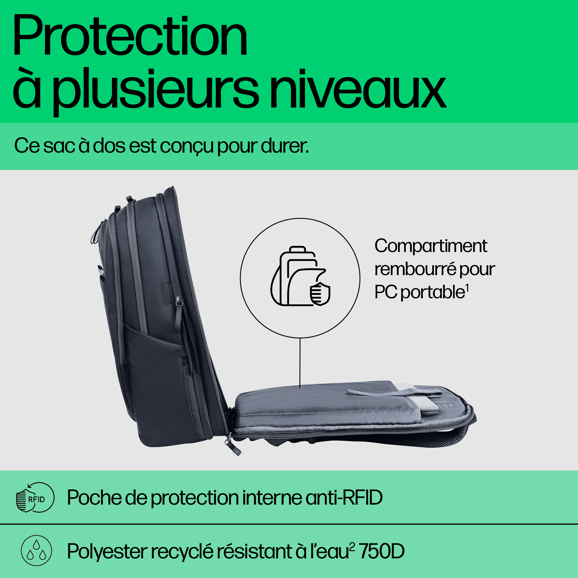 HP Sac à dos pour ordinateur portable Travel Plus 30L 17 pouces, Sac à dos, 43,2 cm (17"), 1,08 kg