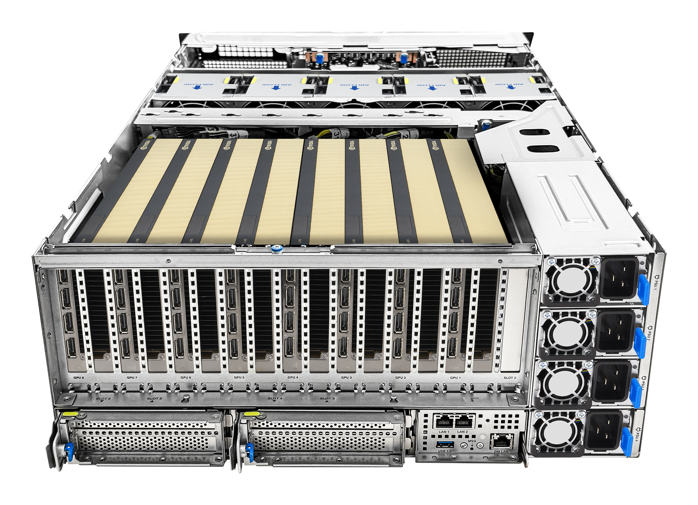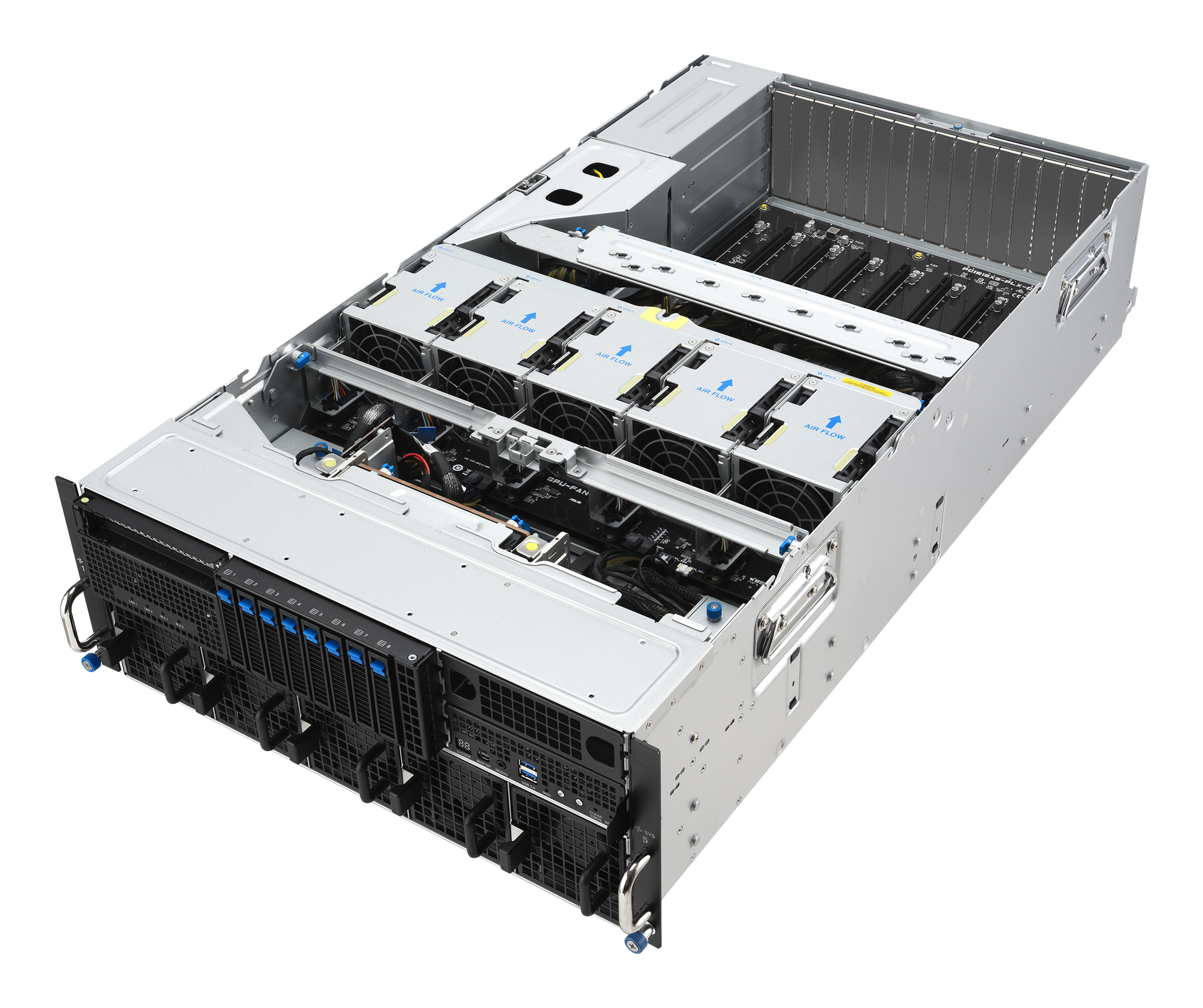 ASUS ESC8000A-E13P. Socket de processeur (réceptable de processeur): LGA 6096, Fabricant de processeur: AMD, Famille de processeur: AMD EPYC. Types de mémoire pris en charge: DDR5-SDRAM, Tailles de DIMM supportées: 16GB, 32GB, 64GB, 128GB, Mémoire interne maximale: 3 To. Tailles de disque de stockage pris en charge: 2.5,M.2, Types de lecteurs de stockage pris en charge: HDD & SSD. Type d'interface Ethernet: 10 Gigabit Ethernet, LAN Ethernet : taux de transfert des données: 10000 Mbit/s, Contrôleur de réseau local (LAN): Intel X710-AT2. Type de châssis: Rack (4 U), Couleur du produit: Argent, Noir, Certification: BSMI, CB, CE, FCC(Class A), RCM
