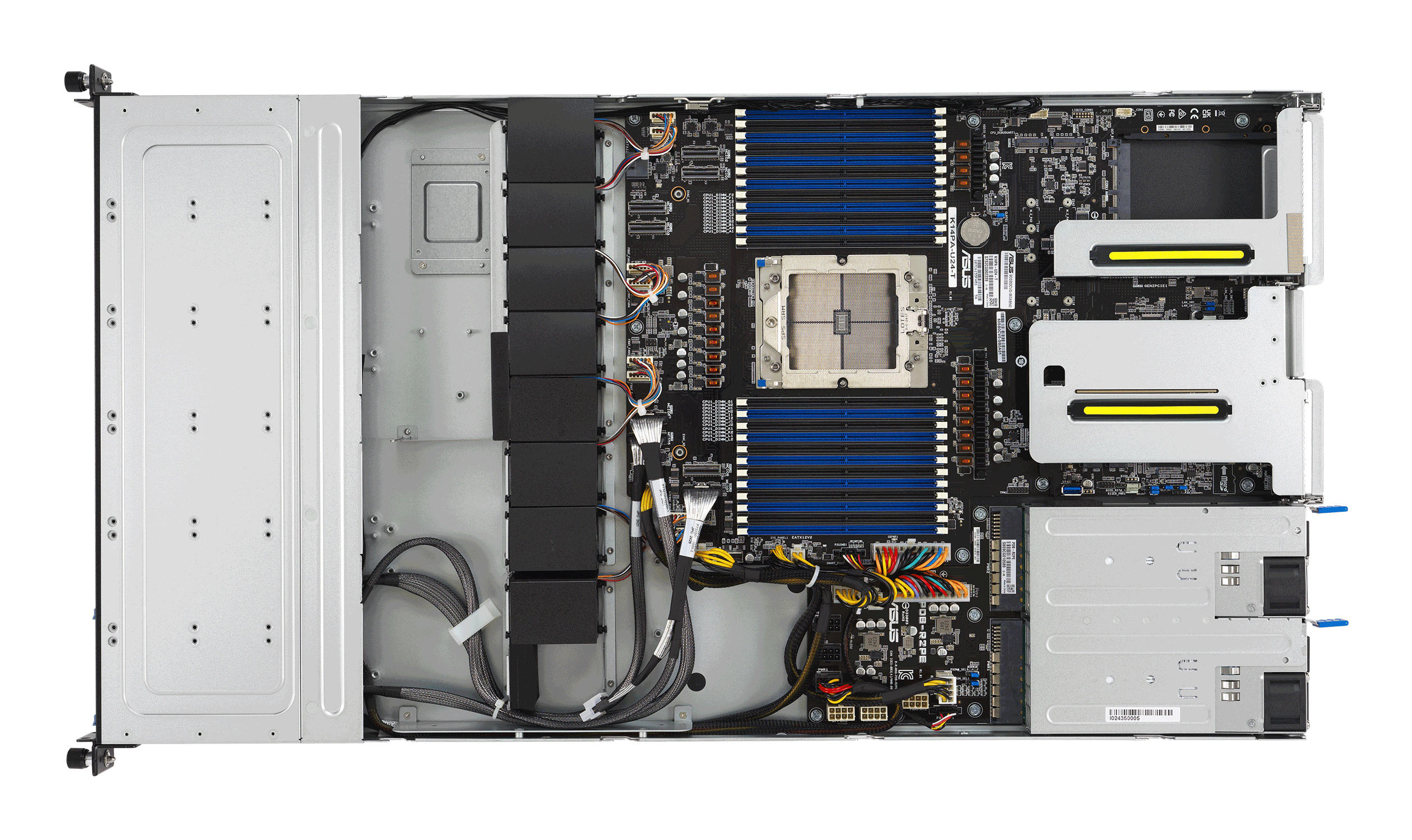 ASUS RS501A-E12-RS4U. Socket de processeur (réceptable de processeur): LGA 6096, Fabricant de processeur: AMD, Famille de processeur: AMD EPYC. Types de mémoire pris en charge: DDR5-SDRAM, Mémoire interne maximale: 3 To, Prise en charge des vitesses d'horloge RDIMM: 4800,6400,5600 MHz. Tailles de disque de stockage pris en charge: M.2,2.5, Types de lecteurs de stockage pris en charge: HDD & SSD, Interfaces de lecteur de stockage prises en charge: SATA, Série Attachée SCSI (SAS). Type d'interface Ethernet: Gigabit Ethernet, LAN Ethernet : taux de transfert des données: 10,100,1000 Mbit/s, Contrôleur de réseau local (LAN): Intel® I350-AM2. Type de châssis: Rack (1 U), Couleur du produit: Noir, Argent, Certification: BSMI, CB, CE, RCM, FCC(Class A), ENERGY STAR®