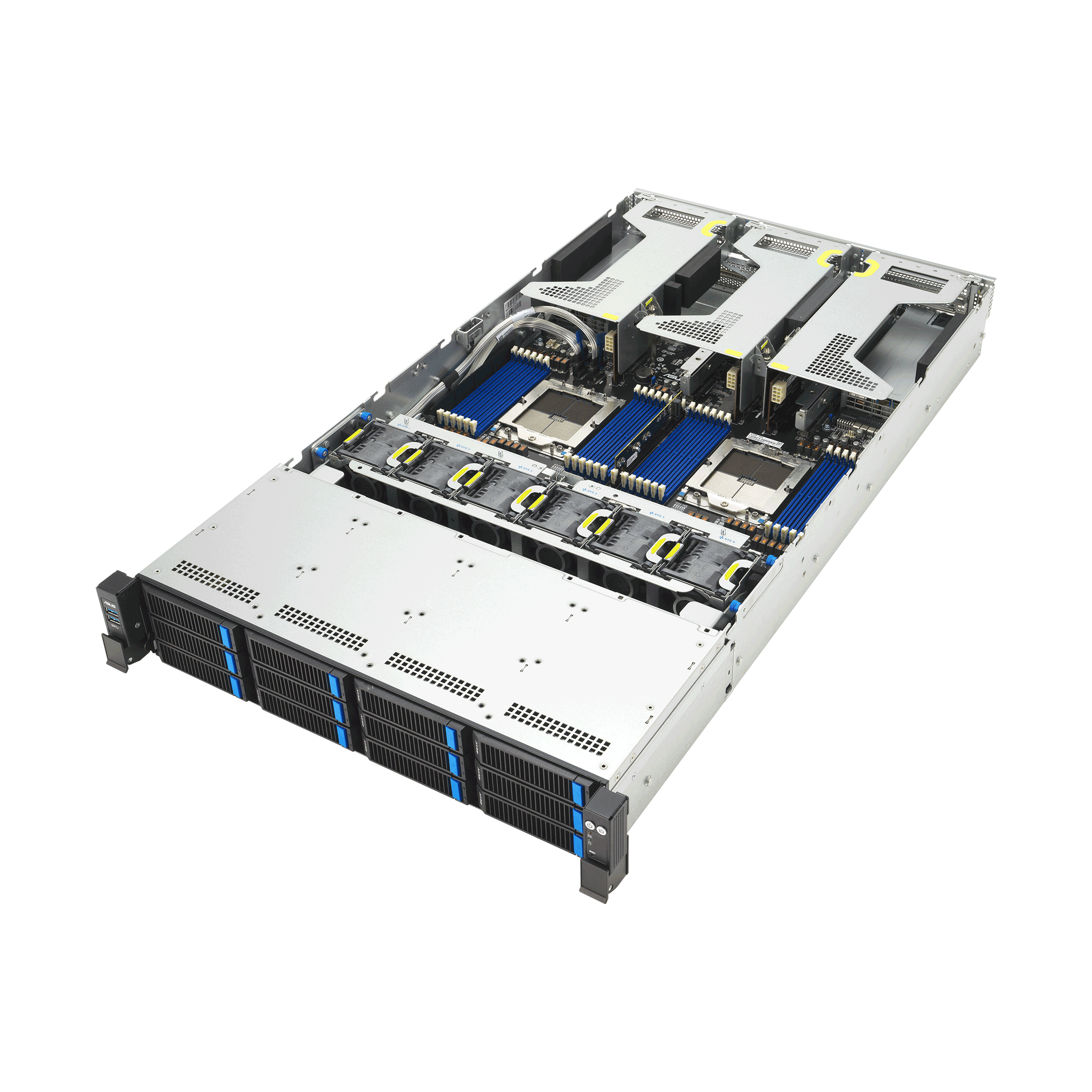 ASUS RS720A-E13-RS12U. Socket de processeur (réceptable de processeur): Socket SP5, Fabricant de processeur: AMD, Famille de processeur: AMD EPYC. Types de mémoire pris en charge: DDR5-SDRAM, Tailles de DIMM supportées: 16GB, 32GB, 64GB, 128GB, 256GB, Mémoire interne maximale: 3 To. Tailles de disque de stockage pris en charge: 2.5,3.5", Interfaces de lecteur de stockage prises en charge: SATA, Série Attachée SCSI (SAS). Modèle d'adaptateur graphique inclus: Aspeed AST2600, Mémoire d'adatapeur graphique à bord: 64 Mo. Type de châssis: Rack (2 U), Couleur du produit: Noir, Argent, Type de refroidissement: Actif
