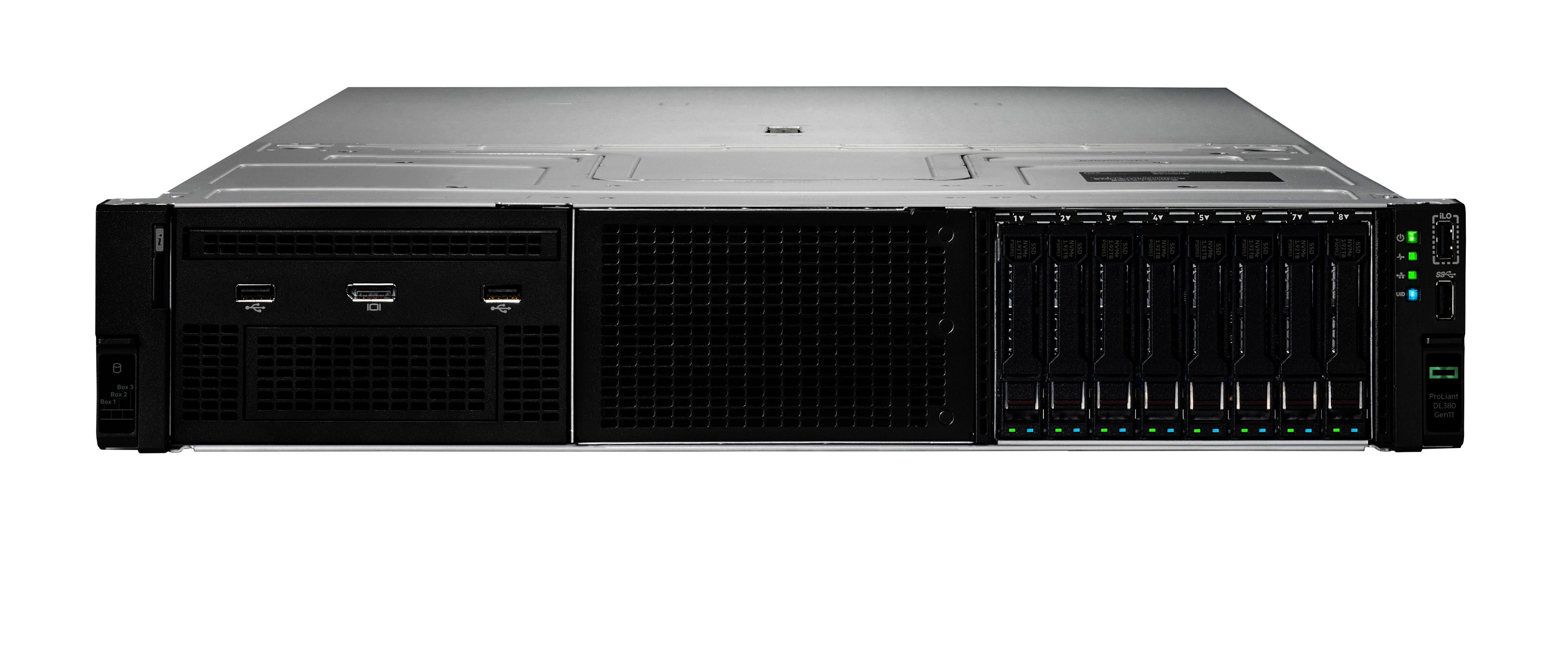 Hewlett Packard Enterprise DL380. Famille de processeur: Intel® Xeon® Silver, Fréquence du processeur: 2 GHz, Modèle de processeur: 4410Y. Mémoire interne: 32 Go, Type de mémoire interne: DDR5-SDRAM, Configuration de la mémoire (fente x taille): 1 x 32 Go. Ethernet/LAN. Alimentation d'énergie: 1000 W. Type de châssis: Rack (2 U)