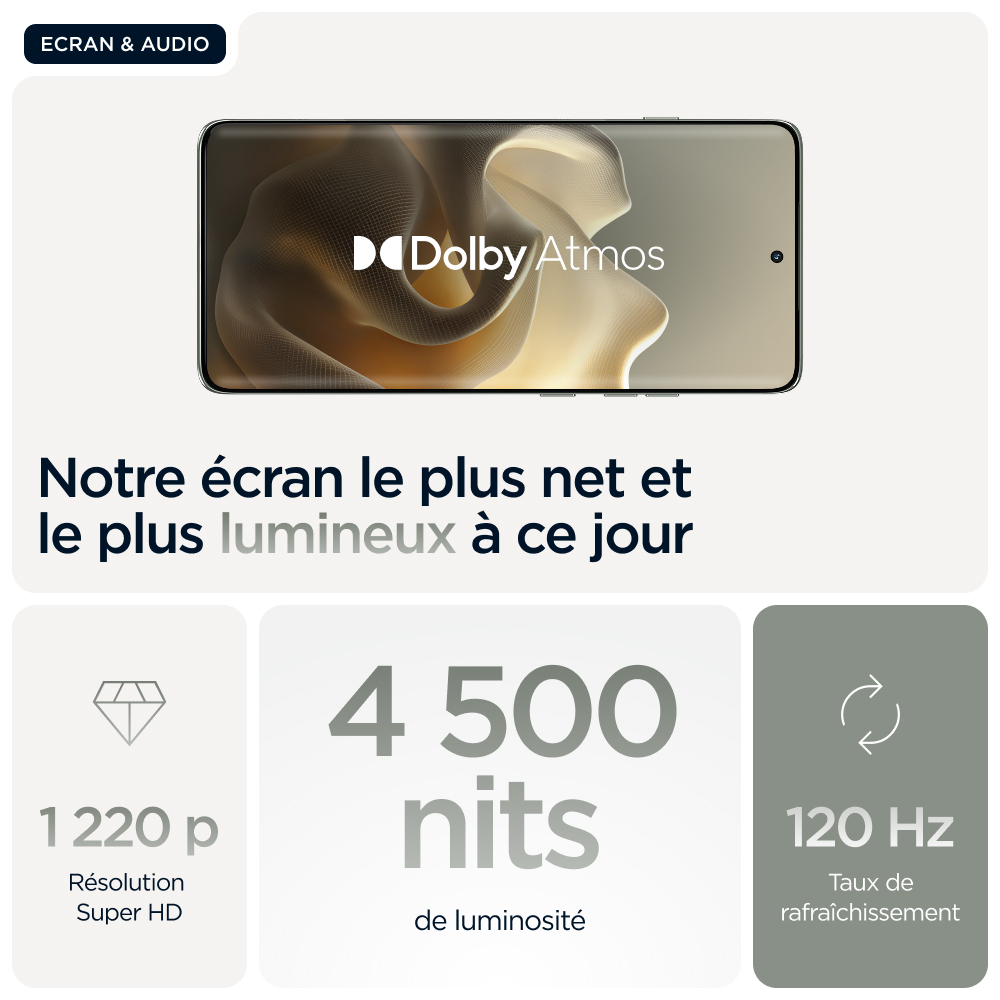 Vous attendez le meilleur en matière de qualité de fabrication. Découvrez le motorola edge 60 pro. Avec son design à bord infini incurvé sur les quatre côtés, ses finitions douces au toucher et ses coloris sélectionnés par Pantone®, il vous offre le summum en matière d’esthétique et de confort. Prenez des photos et des vidéos de niveau professionnel sans effort : il vous suffit de cadrer et d’appuyer sur le déclencheur. Profitez de moto ai, qui stimulera votre créativité et vous assistera dans toutes vos actions quotidiennes en arrière-plan. Vous pouvez compter sur une qualité de fabrication supérieure qui vous offre une sérénité totale grâce à sa résistance à l’immersion1 et à son design répondant à des normes militaires2. Poursuivez vos explorations sans interruption avec une autonomie de batterie supérieure à 45 heures4. Plongez dans vos divertissements sur son écran Super HD (1220p) de 6,7" accompagné du son Dolby Atmos®. De plus, vous pouvez tirer parti des puissantes performances optimisées par l’IA intégrées à l’appareil. En outre, vous profitez des expériences moto qui vous ouvrent les portes d’une liberté créative totale, d’interactions sans effort, et de la sérénité. Trouvez votre edge avec le motorola edge 60 pro.