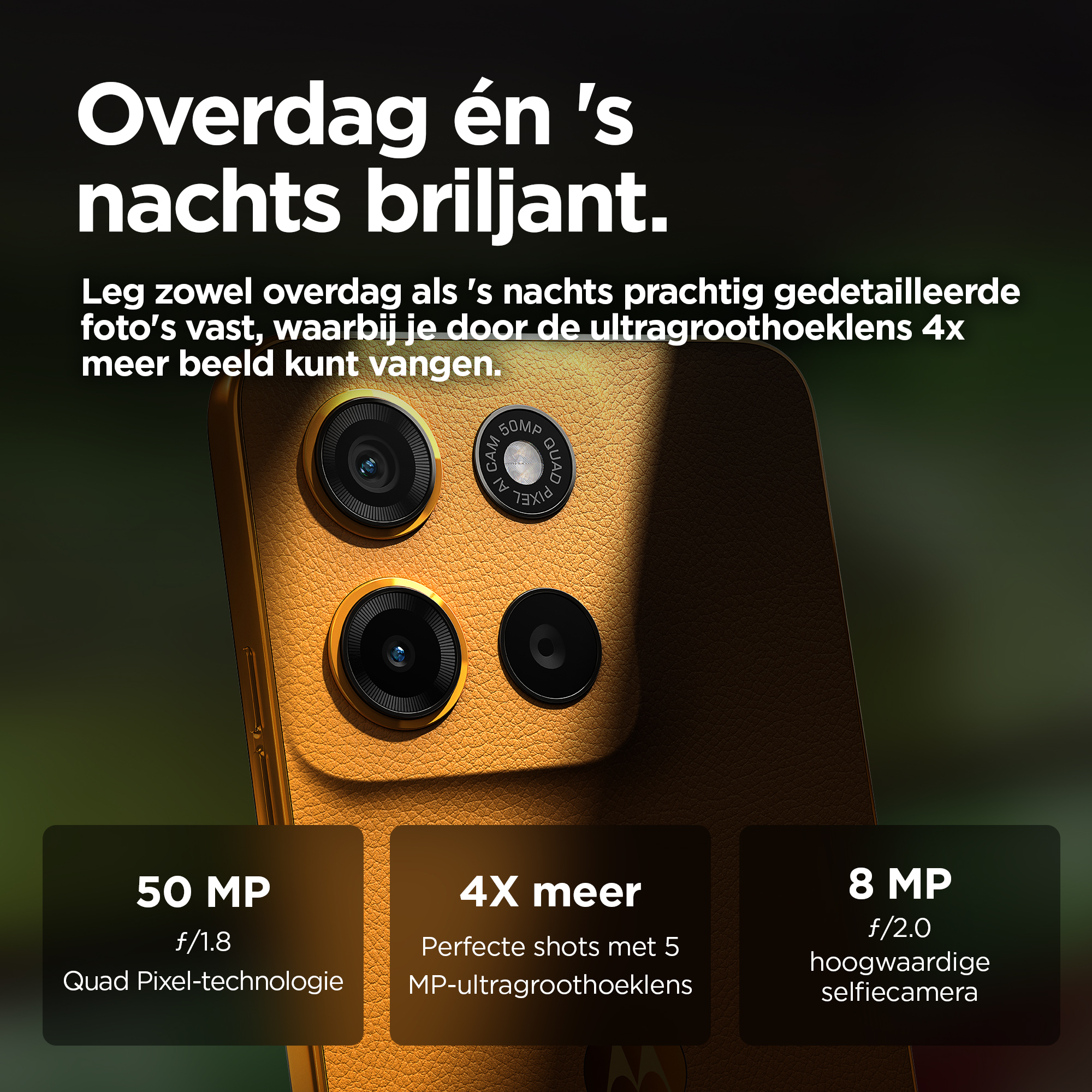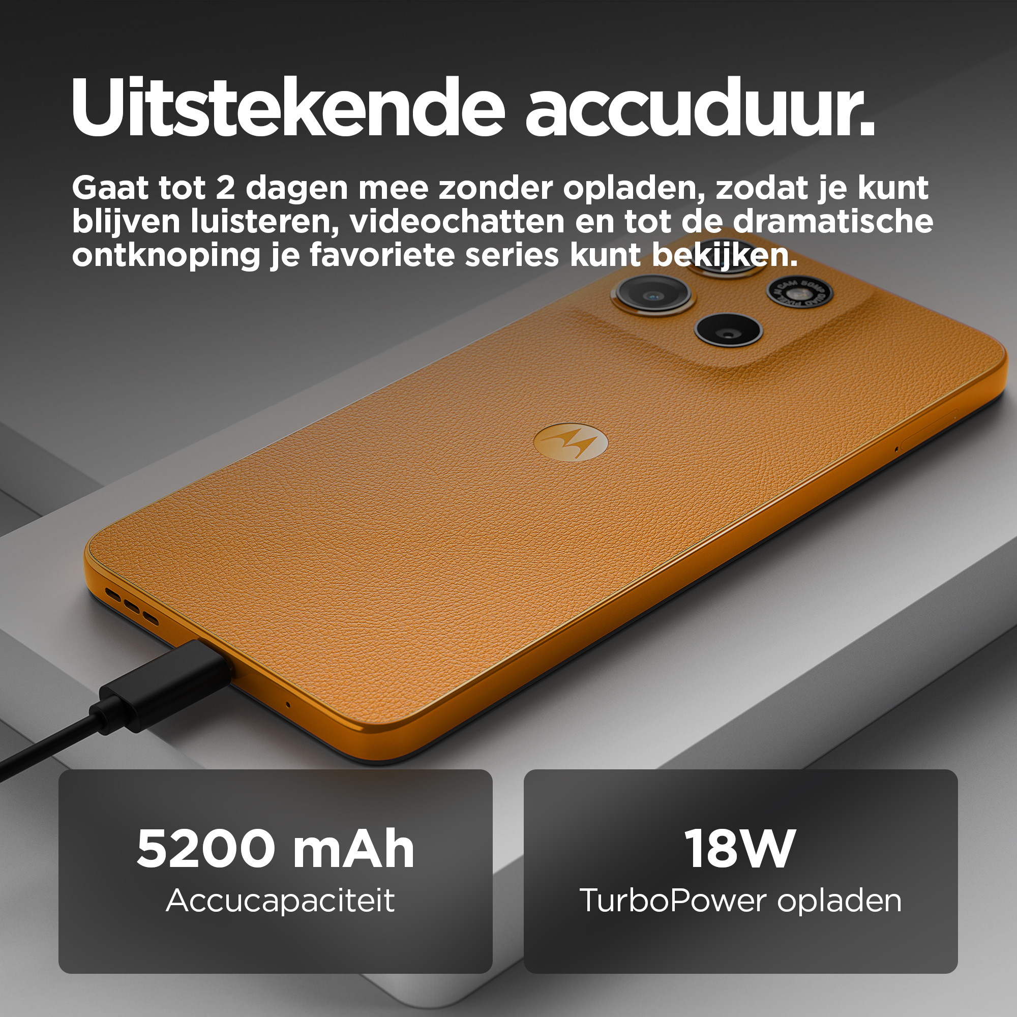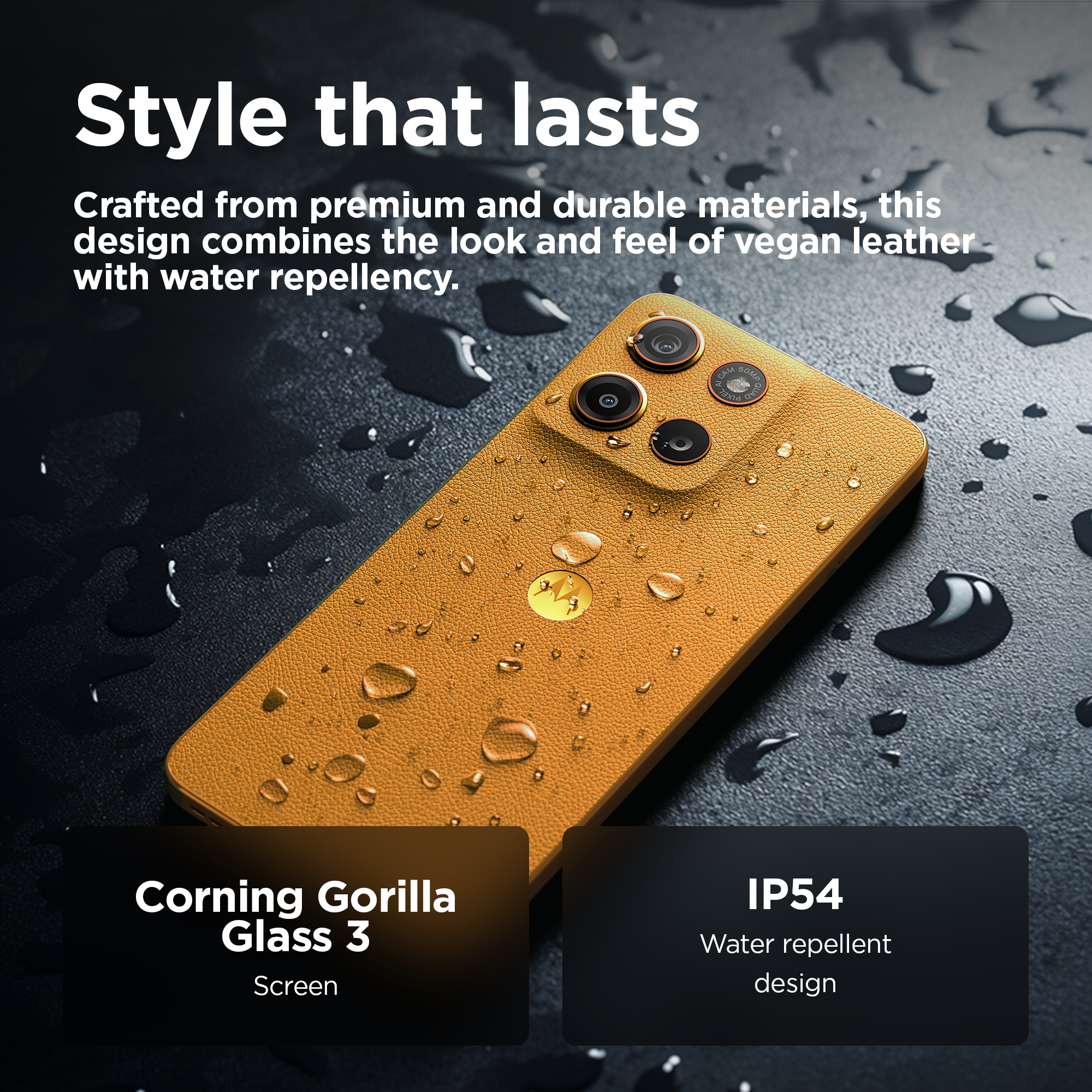 Le moto g15 vous offre le meilleur du divertissement cinématographique. Regardez vos émissions et films préférés sur un écran Full HD+ ultra net et lumineux de 6,72", même en plein soleil. Plongez dans un son multidirectionnel grâce aux puissants haut-parleurs stéréo avec Bass Boost et Dolby Atmos®. Capturez des photos magnifiquement détaillées avec l’appareil photo de 50 MP(1), éliminant les barres disgracieuses dues aux sources de lumière artificielle. Rechargez rapidement votre smartphone grâce au chargeur TurboPower™(2) et profitez d’une autonomie prolongée avec une batterie de 5 200 mAh. Le cuir vegan lui confère un style haut de gamme et son design résistant aux éclaboussures(3) et le verre Corning® Gorilla® Glass 3 renforcent sa protection. Bénéficiez de performances rapides et d’une grande capacité de stockage pour ne jamais être à court d’espace pour vos divertissements. Vivez chaque jour plus intensément avec le moto g15.