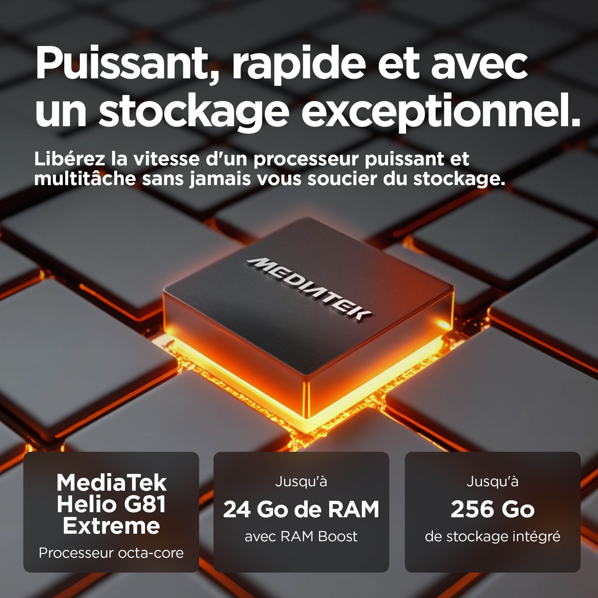 6.72", LCD, 2400 x 1080, 391 ppi, MediaTek Helio G81 Extreme, 4GB LPDDR4X RAM, 128GB, microSD, 50MP + 5MP, 8MP, 3.5mm, Bluetooth 5.4, 802.11 a/b/g/n/ac, USB Type-C, NFC, Android 15