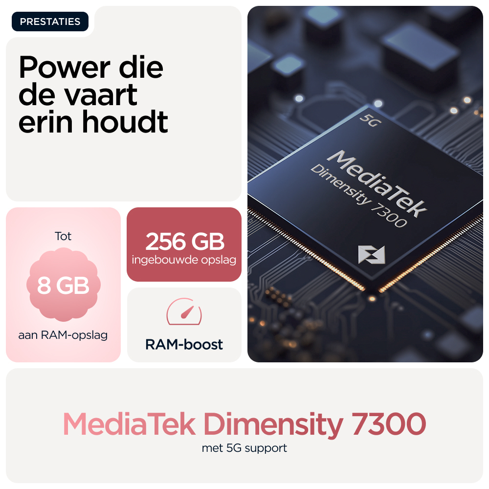 6.67", AMOLED, HDR10+, 2712 x 1220px, 446ppi, MediaTek Dimensity 7300, 8/256GB, 50MP + 8MP, 32MP, USB Type-C, 5G, Bluetooth 5.4, Wi-Fi 6, NFC, Android 15