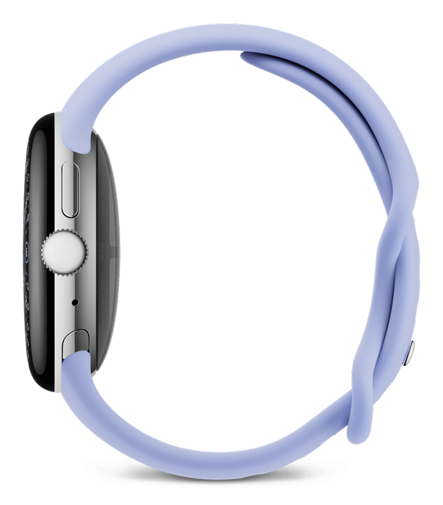 Google Pixel Watch 4. Technologie d'affichage: AMOLED, Écran tactile. Capacité de la RAM: 2048 Mo, Memoire flash: 32 Go. Wifi. GPS (satellite). Capacité de la batterie: 325 mAh. Poids: 31 g. Humidité : étanche jusqu'à: 50 m, Matière de la bande: Fluoroélastomère, Couleur du bracelet: Violet, Taille du bracelet: S/L. Système d'exploitation installé: Wear OS