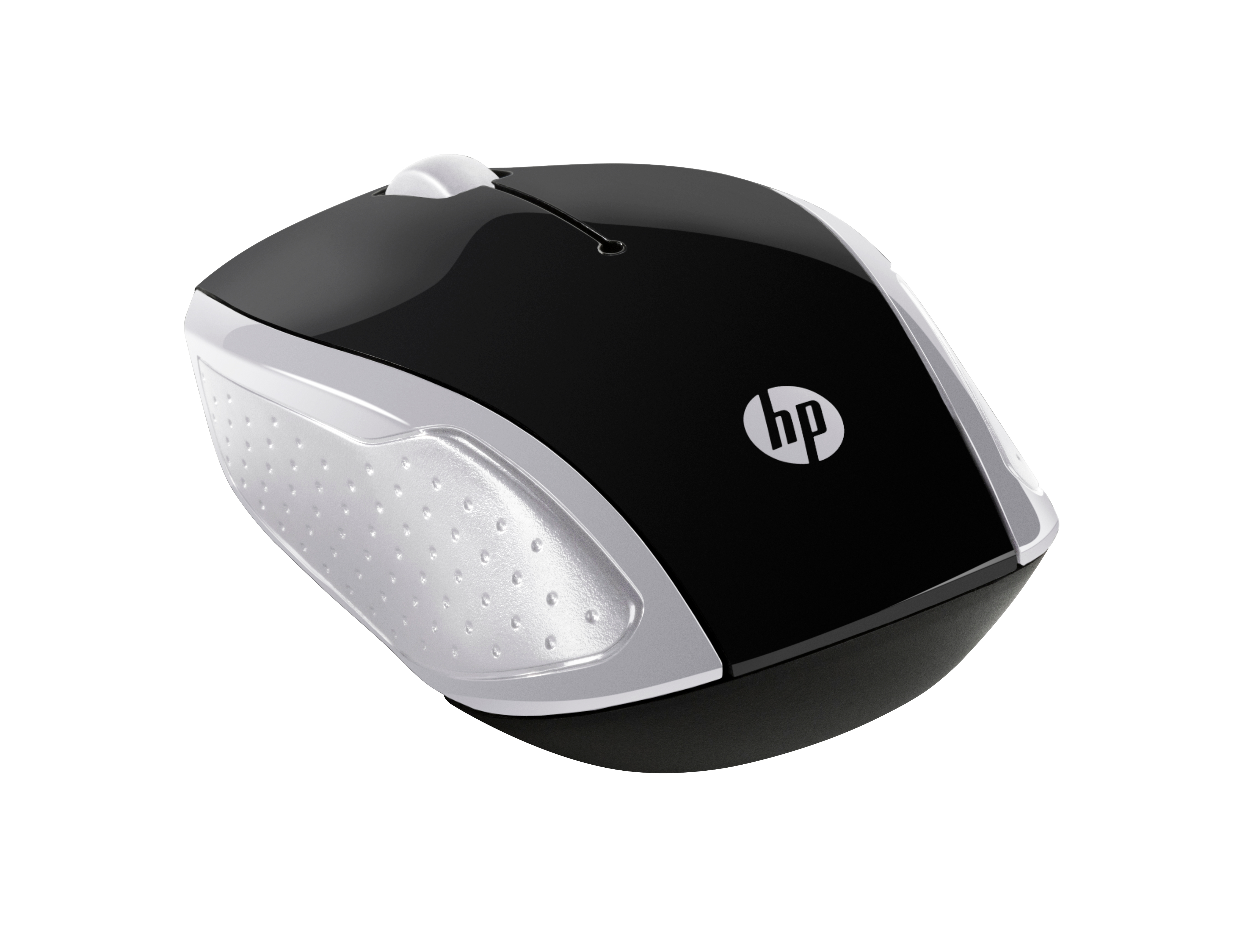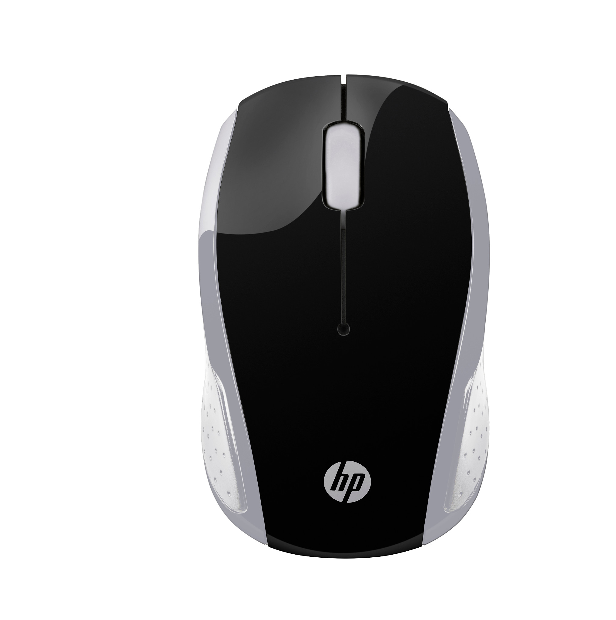 HP Souris sans fil 200 (Argent vif), Ambidextre, Optique, RF sans fil, 1000 DPI, Noir, Argent