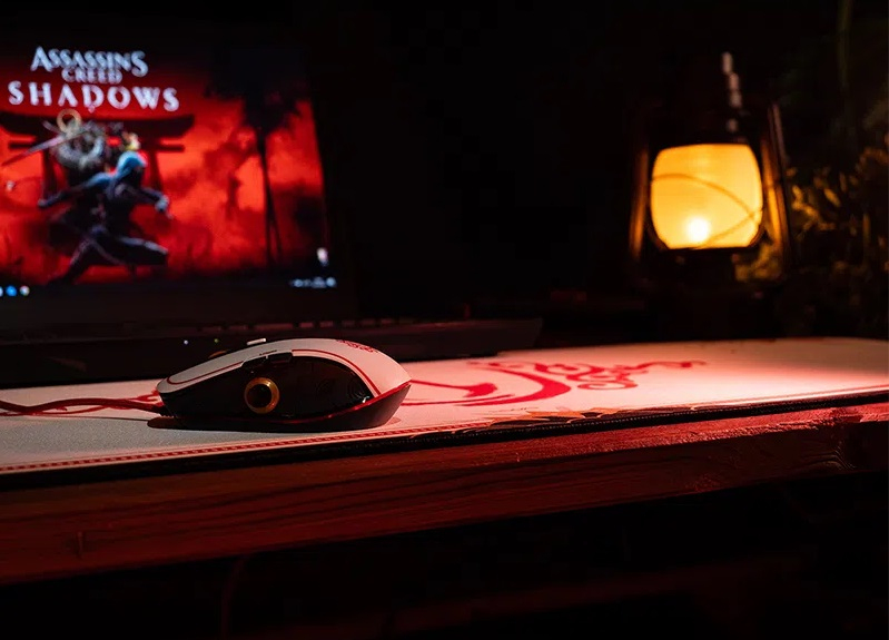 Lexip Coffret "Initiate "Assassin’s Creed Shadows (Souris + Tapis De Souris XXL + Jeu PC), Droitier, Optique, USB Type-A, 12000 DPI, Noir, Or, Rouge, Blanc