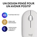 Ne laissez plus les bruits de clic peser sur votre travail. La souris Pebble Mouse 2 M350s est une souris discrète dotée de la technologie Silent Touch qui réduit de 90% les bruits de clic.