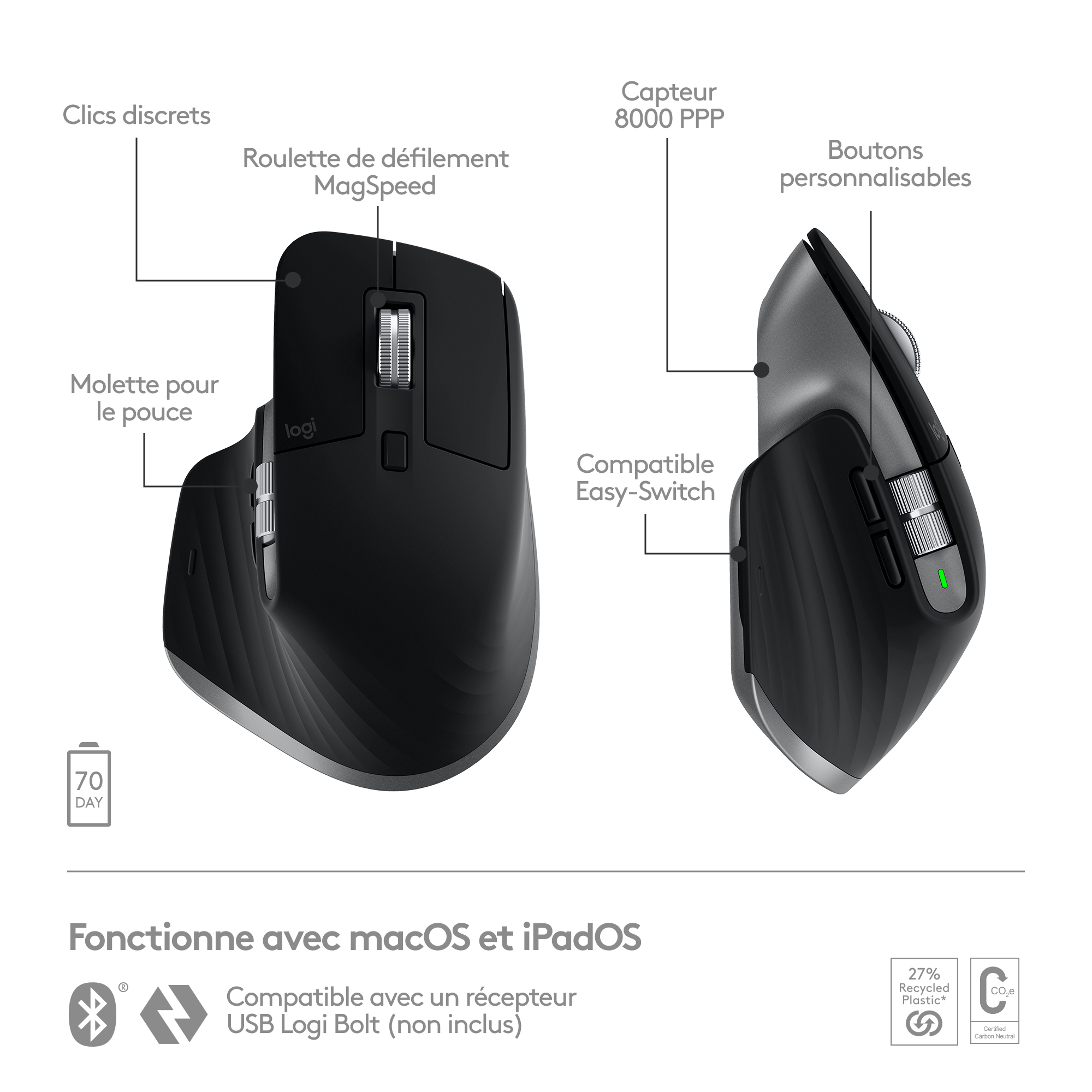 Souris sans fil performante Logitech MX Master 3S for Mac La série Master par Logitech