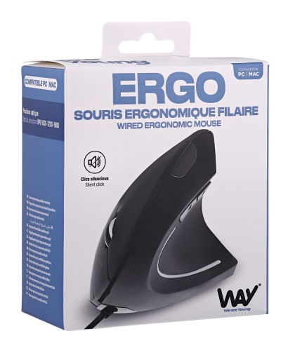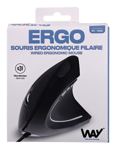 1000 - 1200 - 1600 DPI, verticale, 6 boutons, 12.5x6.6x8.5 cm, Noir