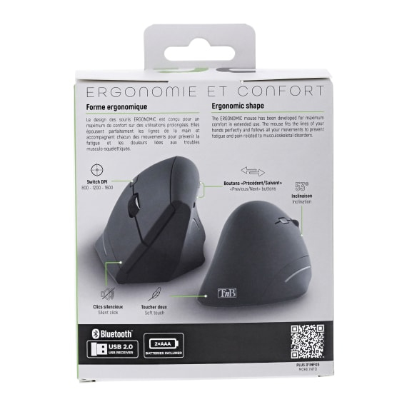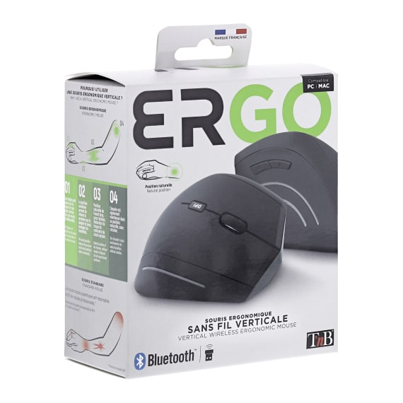 T'nB MWERGOVBT, Droitier, Conception verticale, Bluetooth + USB Type-A, 1600 DPI, Noir