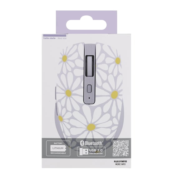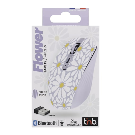 T'nB MWXFLOWER. Format: Droitier. Interface de l'appareil: Bluetooth + USB Type-A, Résolution en mouvement: 1600 DPI, Type de boutons: Bouton tactile, Quantité de boutons programmables: 6, Type Scroll: Roue. Source d'alimentation: Piles. Couleur du produit: Multicolore