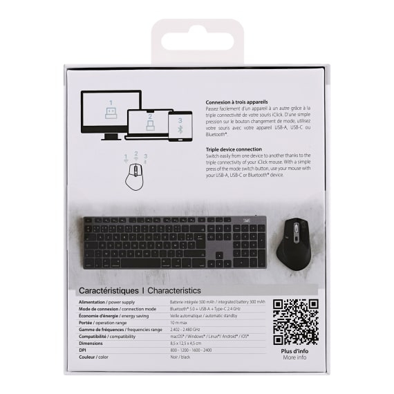 T'nB MWBTPOWER3. Format: Gauche. Interface de l'appareil: RF Wireless + USB Type-C, Résolution en mouvement: 2400 DPI, Type de boutons: Bouton tactile, Quantité de boutons programmables: 7, Type Scroll: Roue. Source d'alimentation: Piles. Couleur du produit: Noir, Gris