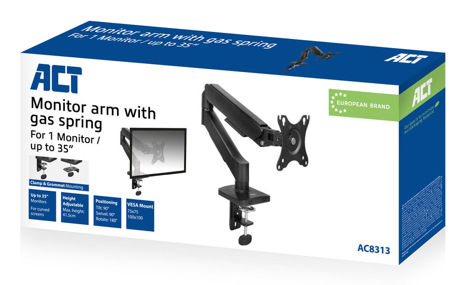 Bras pour écran 35 pouces, vérin à gaz, 1 écran, ACT Essentials