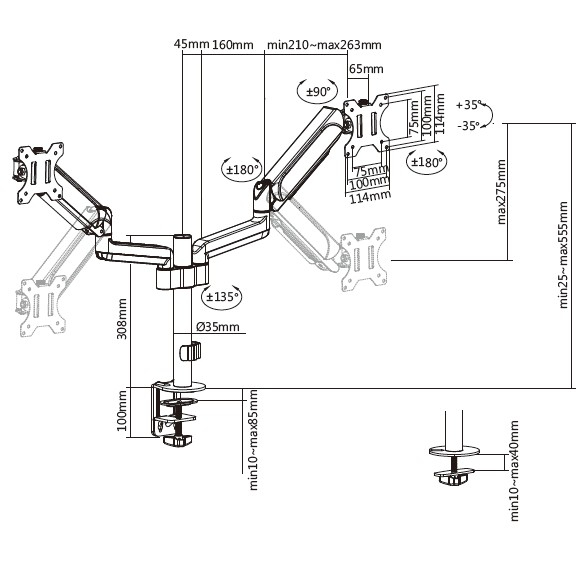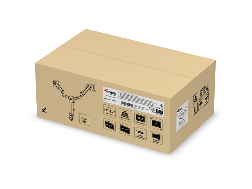 Equip Support de bureau pour moniteur double 17"-32, Pince, 18 kg, 43,2 cm (17"), 81,3 cm (32"), 100 x 100 mm, Noir