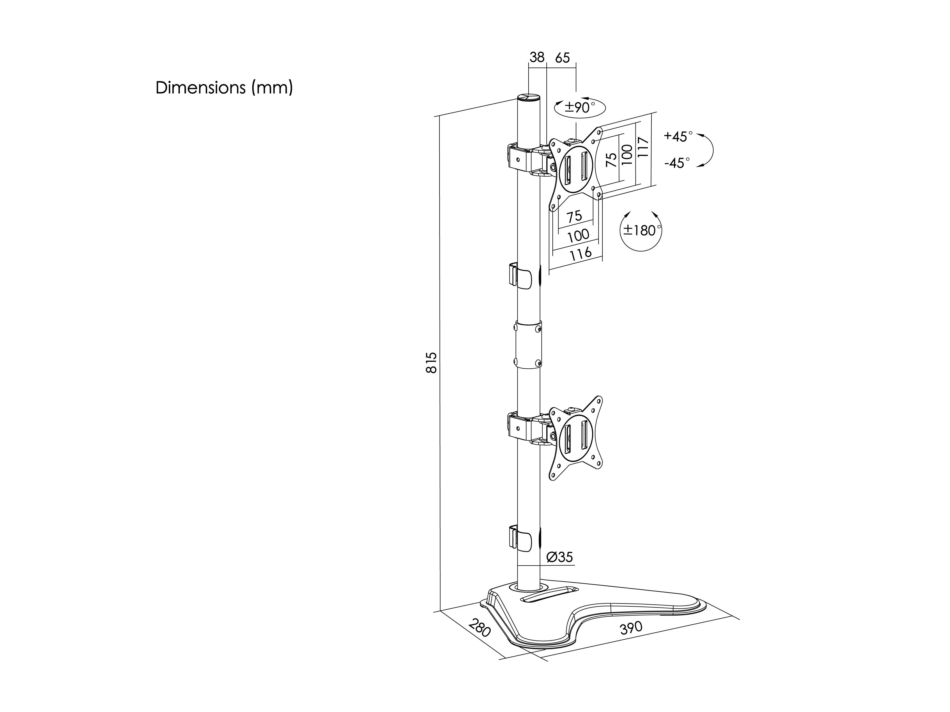 Equip Support de table pour moniteur vertical double 17"-32, 9 kg, 43,2 cm (17"), 81,3 cm (32"), 100 x 100 mm, Réglage de la hauteur, Noir