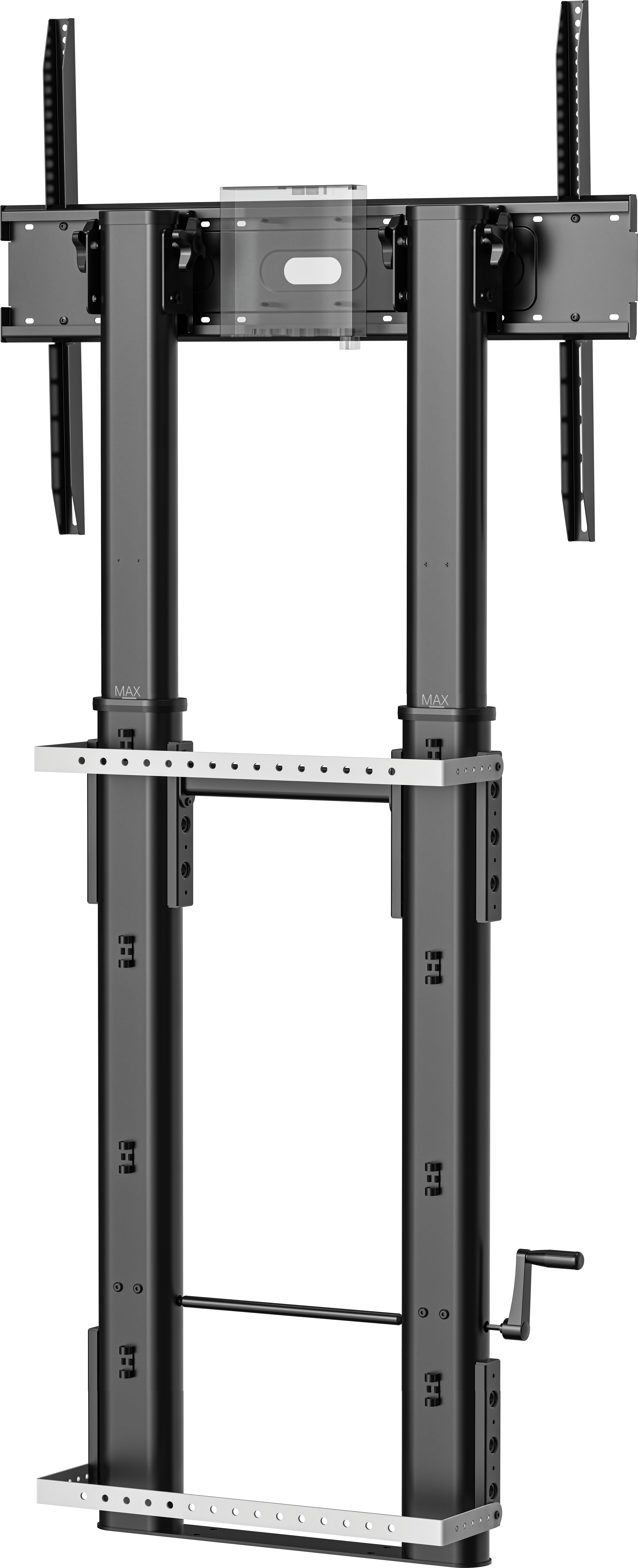 Vision 1195054500008. Capacité de charge maximale: 80 kg, Taille minimale de l'écran: 139,7 cm (55"), Taille maximale de l’écran: 2,54 m (100"), Compatibilité interface de montage (min): 200 x 200 mm, Compatibilité interface de montage (max): 800 x 600 mm. Réglage de la hauteur, Angle d'inclinaison: 0 - 3°. Couleur du produit: Noir