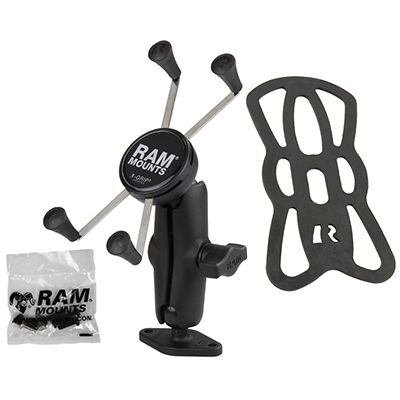 The RAM-B-102-UN10U consists of a diamond base, double socket arm and universal spring loaded X-Grip IV cradle for large phones and phablets. Designed into the mount is a B size 1" diameter patented rubber ball and socket system with adjustment points at the both ends of the socket arm; this with a twist of the arm knob, allows you can move the X-Grip mount to your optimum viewing position. The 2.43" x 1.31" diamond base has two holes 1.912" from center to center and matches the industry standard AMPS hole pattern. The spring loaded X-Grip cradle expands and contracts, allowing for a perfect custom fit of your phone or phablet. The X-Grip includes a device tether recommended for outdoor applications. The cradle is compatible with handheld devices that will fit the dimensions listed below. It is important to verify the dimensions of your handheld device with a case/sleeve/skin when determining the overall size.