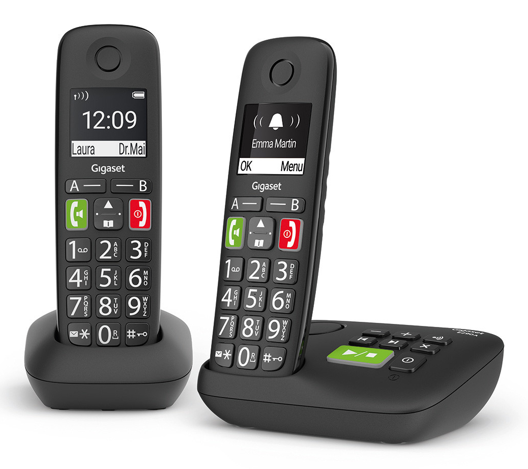 Gigaset E290A Duo, Téléphone analog/dect, Combiné sans fil, Haut-parleur, 150 entrées, Identification de l'appelant, Noir