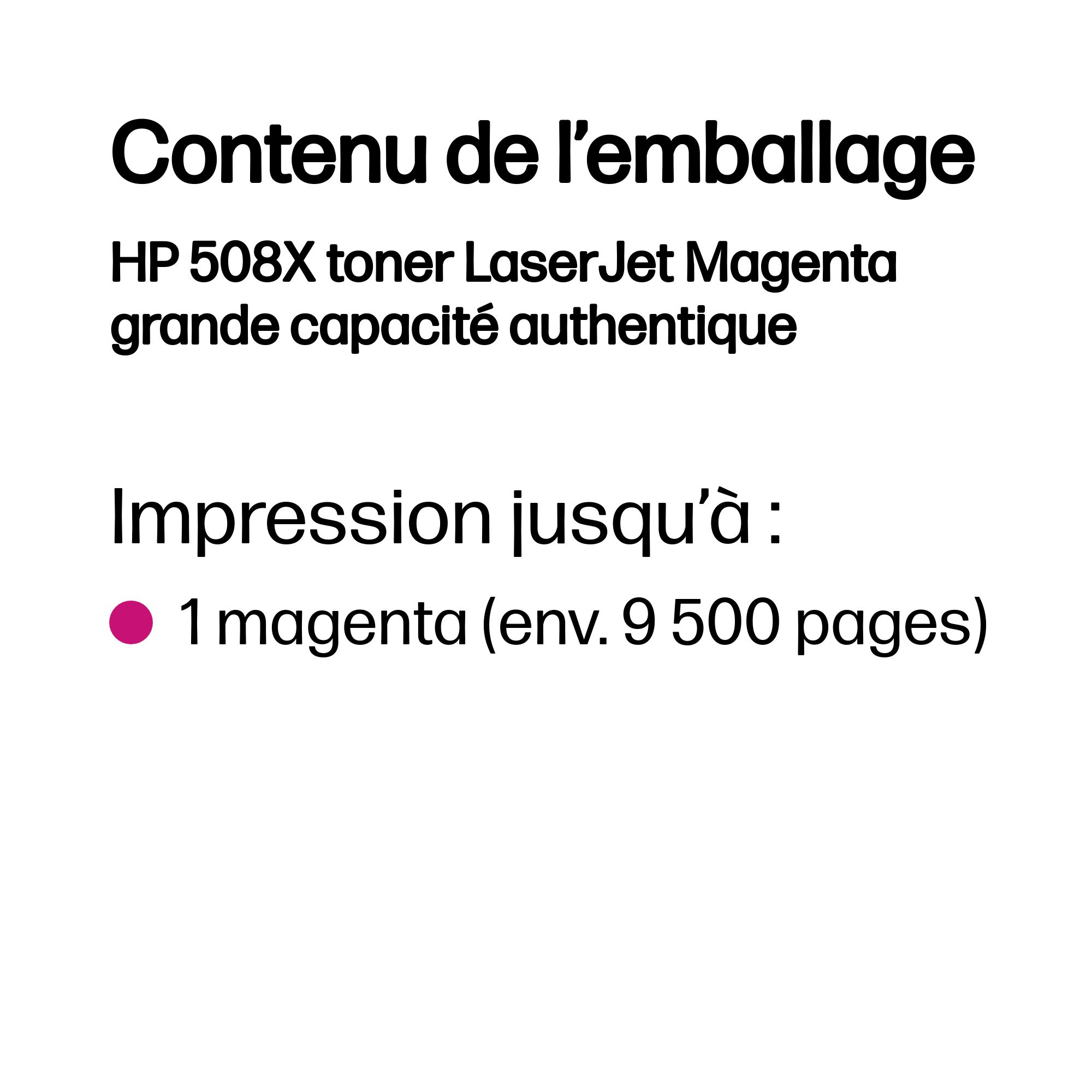HP 508X toner LaserJet Magenta grande capacité authentique, 9500 pages, Magenta, 1 pièce(s)