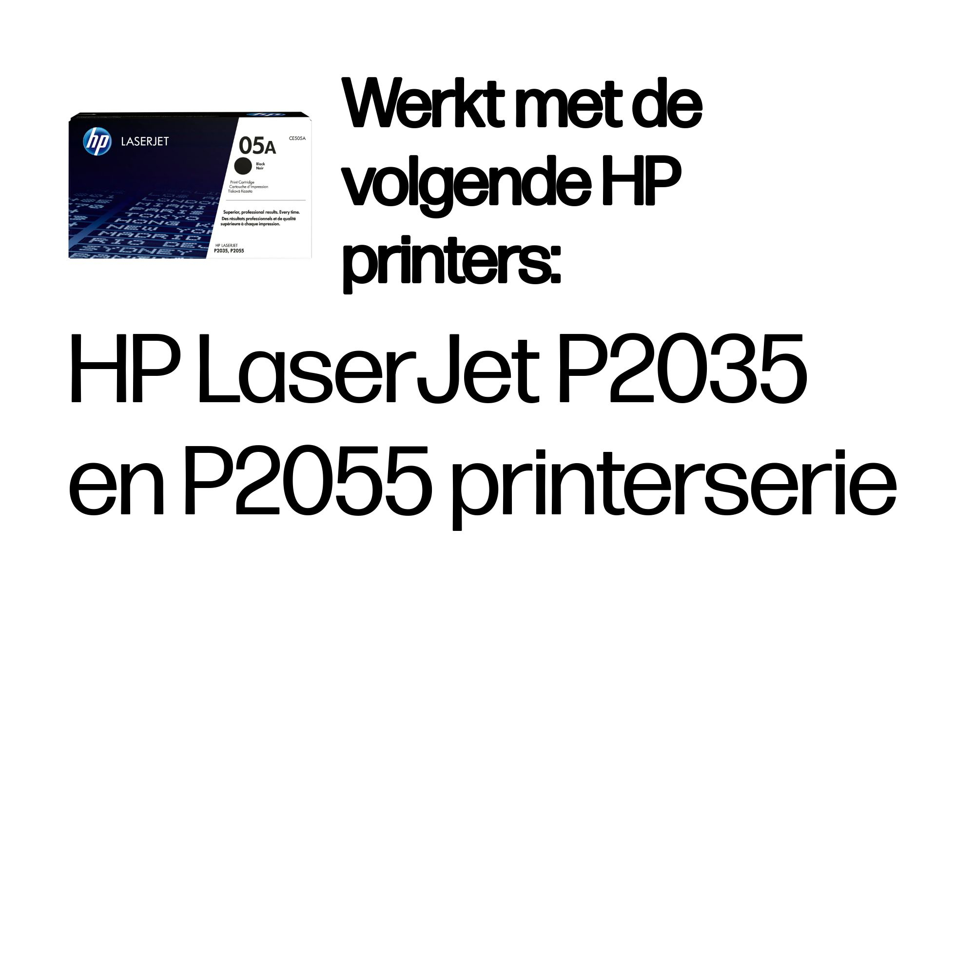 Les cartouches de toner HP 05A LaserJet garantissent une impression sans problème, page après page. Effectuez vos impressions bureautiques sans souci grâce aux cartouches d'impression d'origine HP avec toner d'origine HP. En outre, vous pouvez compter sur l'engagement de HP vis-à-vis de l'environnement.