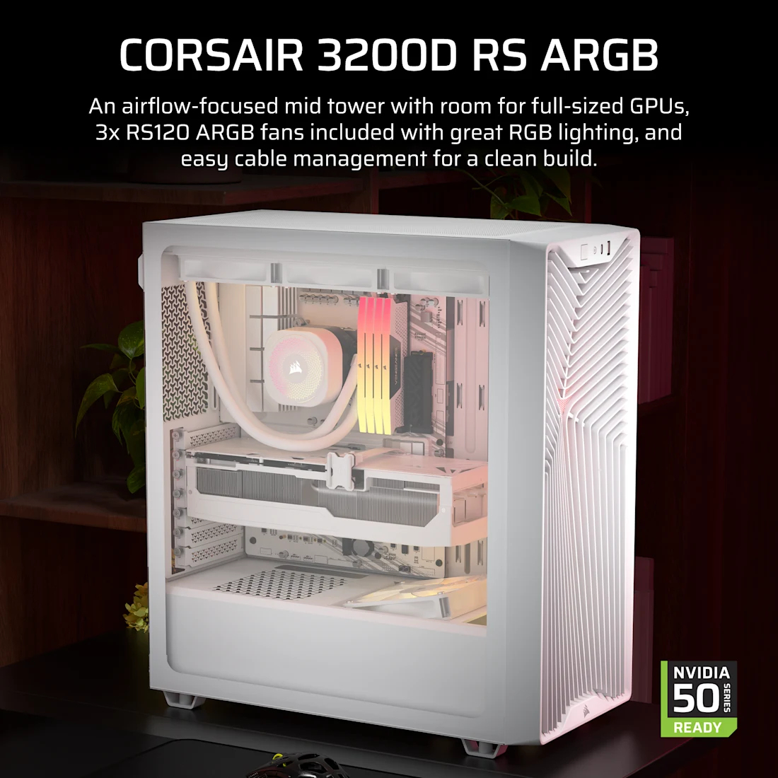 Corsair Midi Tower 3200D RS ARGB PC Case, Midi Tower, PC, Blanc, ATX, Mini-ATX, micro ATX, Acier, Verre trempé, Multi