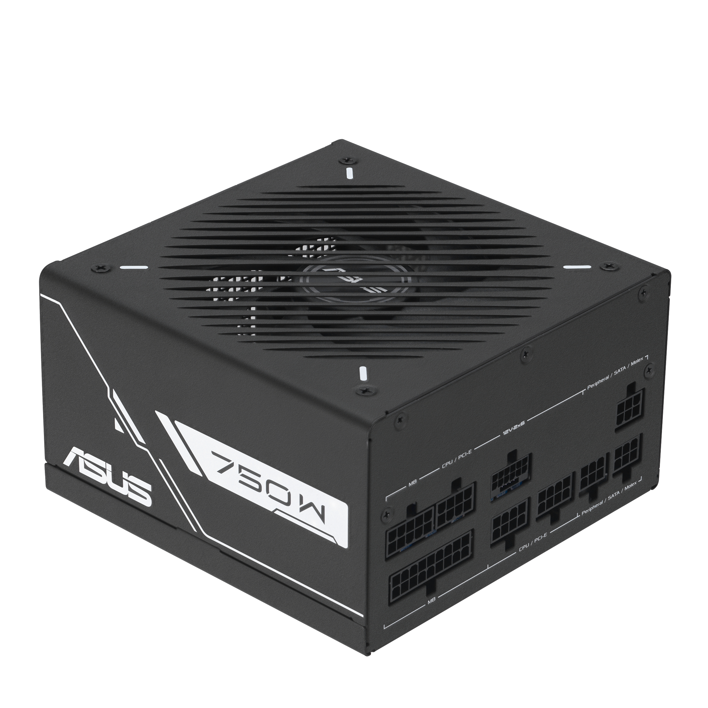 ASUS Prime -750G. Puissance totale: 750 W, Tension d'entrée AC: 100 - 240 V, Type de Correcteur de Factueur de Puissance (CFP): Actif. Connecteur de la carte mère: 20+4 pin ATX, Longueur de câble d'alimentation de carte-mère: 60 cm, Longueur du câble d'alimentation SATA: 400,120 mm. Utilité: PC, Facteur de forme de l'unité d'alimentation: ATX, Certification 80 PLUS: 80 PLUS Gold. Couleur du produit: Noir, Type de refroidissement: Actif, Nombre de ventilateurs: 1 ventilateur(s). Câbles inclus: UC, PCIe, Peripheral (Molex), SATA