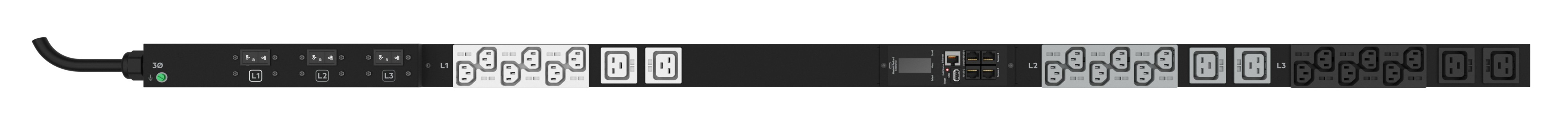HPE G2 Metered 3Ph 8.6kVA/L15-30P 24A/208V Outlets (18) C13 (6) C19/Vertical NA/JP PDU, Avec mesure en ligne, 0U, Triphasé, verticale, 24 sortie(s) CA, Coupleur C13, Coupleur C19