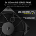 Corsair Nautilus 240 RS LCD. Type: Refroidisseur de liquide tout-en-un, Diamètre du ventilateur: 12 cm, Vitesse de rotation (min): 420 tr/min, Vitesse de rotation (max): 2100 tr/min, Pression d'air minimum: 0,2 mmH2O, Pression d'air maximale: 4,15 mmH2O. Largeur: 125 mm, Profondeur: 275 mm, Hauteur: 125 mm. Couleur du produit: Noir