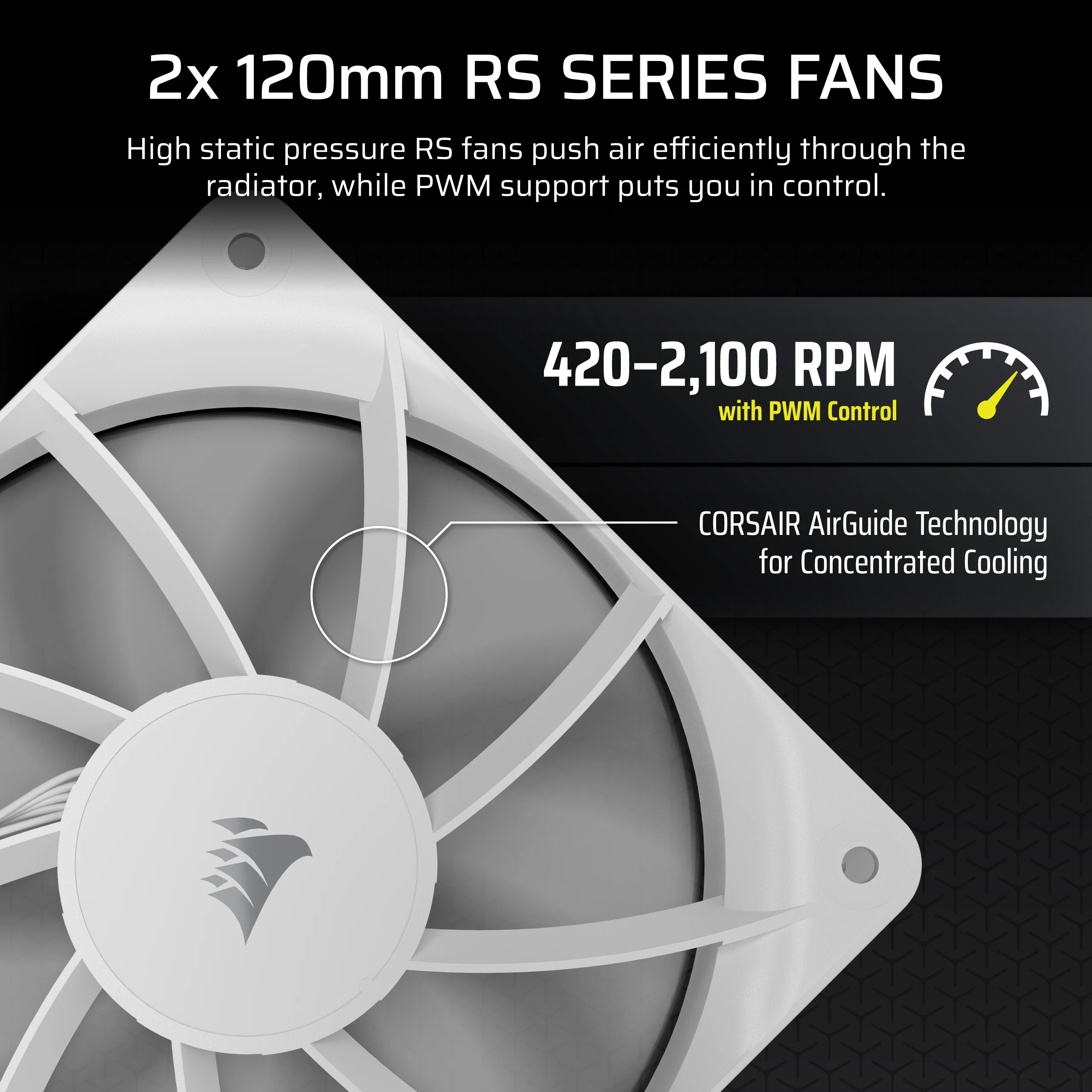 Corsair Nautilus 240 RS LCD, Refroidisseur de liquide tout-en-un, 12 cm, 420 tr/min, 2100 tr/min, Blanc
