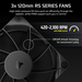Corsair Nautilus 360 RS. Type: Refroidisseur de liquide tout-en-un, Diamètre du ventilateur: 12 cm, Vitesse de rotation (max): 2100 tr/min, Pression d'air minimum: 0,2 mmH2O, Pression d'air maximale: 4,15 mmH2O. Largeur: 125 mm, Profondeur: 396 mm, Hauteur: 125 mm. Couleur du produit: Noir