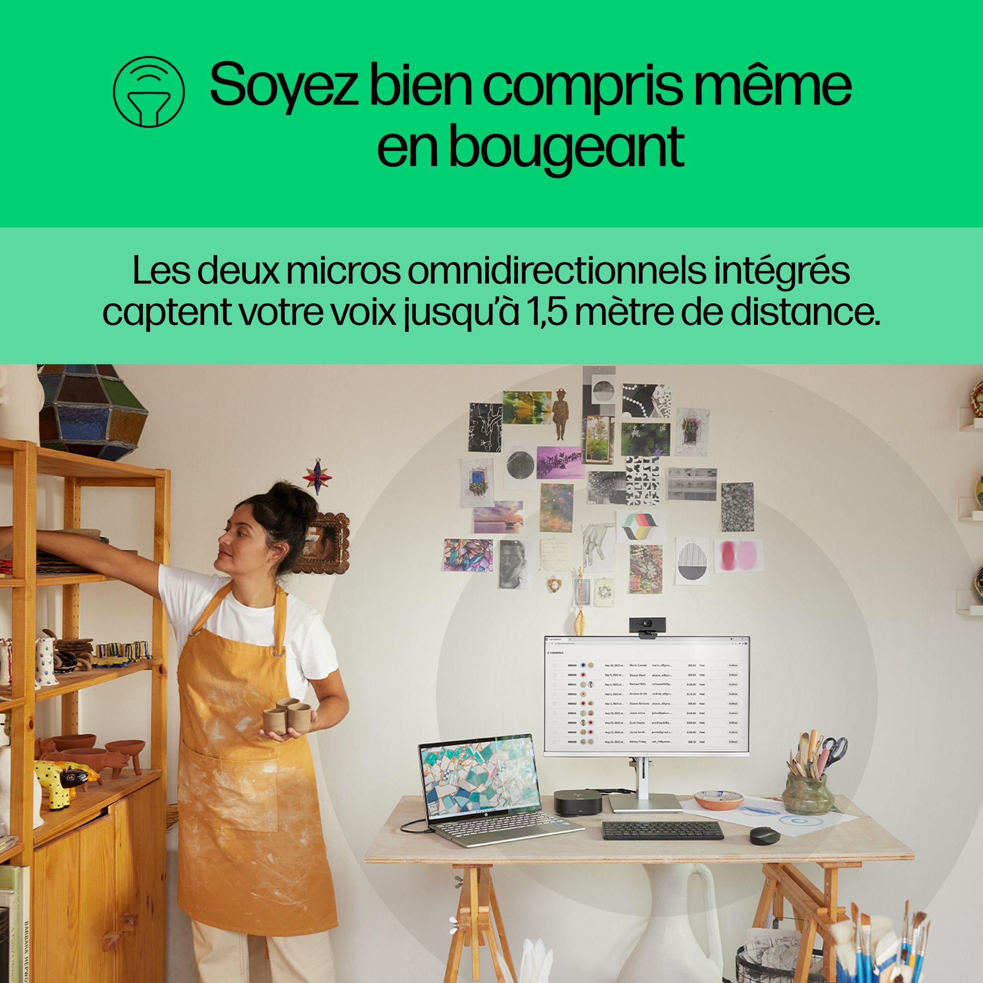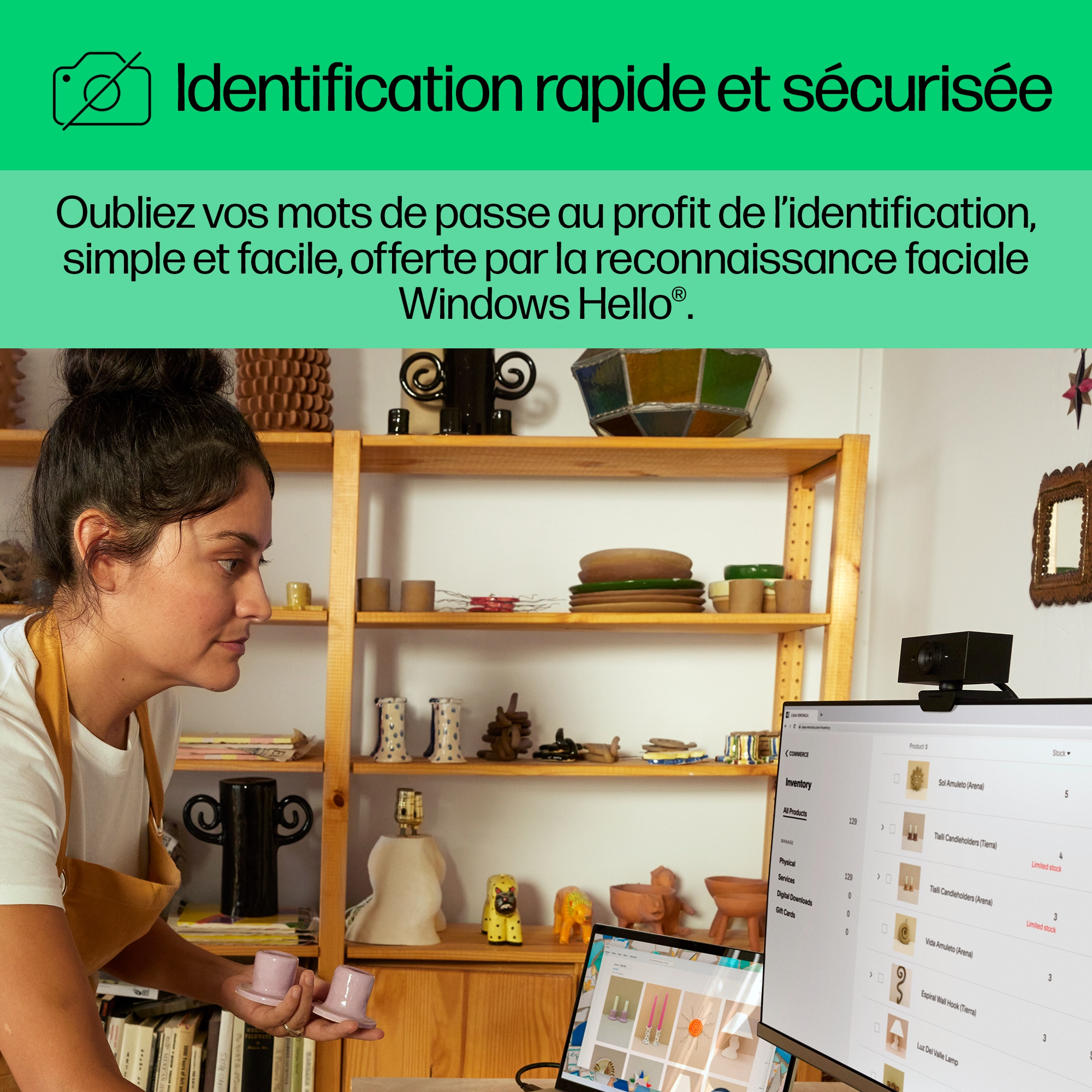 Compatible avec la technologie Windows Hello[1], cette webcam vous permet de vous connecter en toute simplicité et en toute sécurité, et les fonctionnalités d’IA vous garantissent une image parfaite dès que vous allumez la caméra. Montrez-vous automatiquement sous votre meilleur jour où que vous soyez grâce à la résolution Full HD, aux options de personnalisation et aux réglages automatiques de l’arrière-plan.