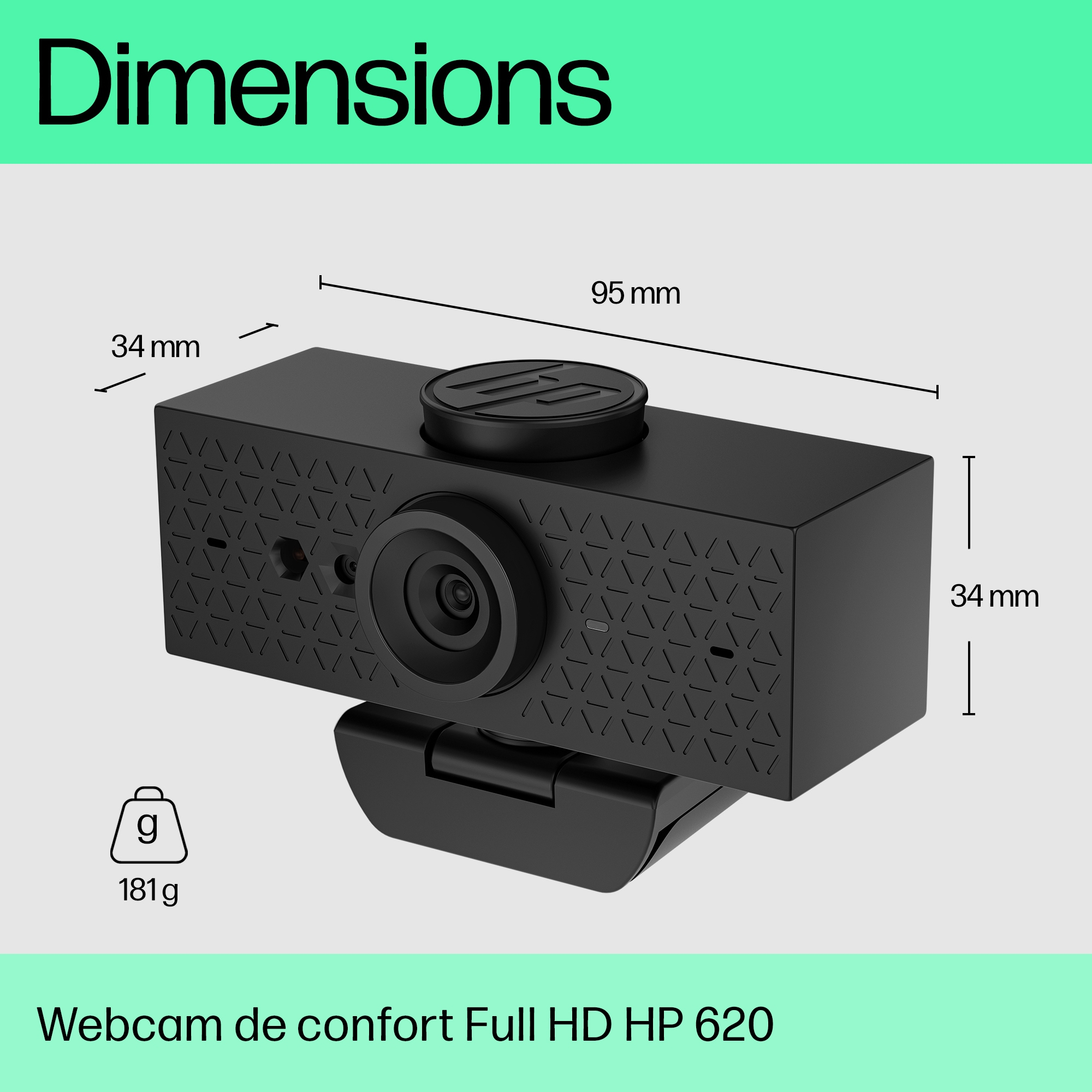 HP 620 FHD Webcam, 4 MP, 1920 x 1080 pixels, Full HD, 60 ips, 720p, 1080p, 5x