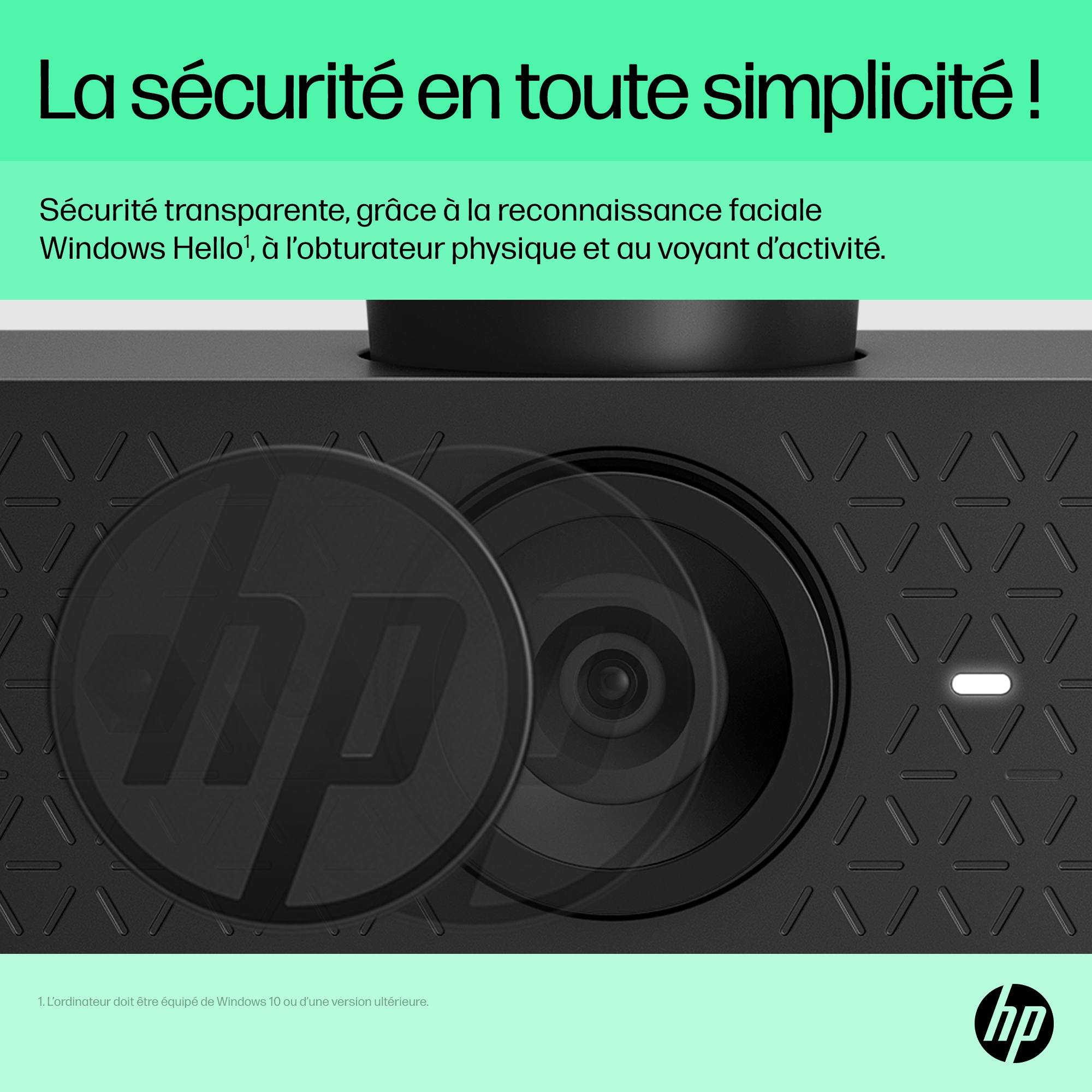 HP Webcam FHD 625, 4 MP, 1920 x 1080 pixels, Full HD, Professionnel, USB, Noir