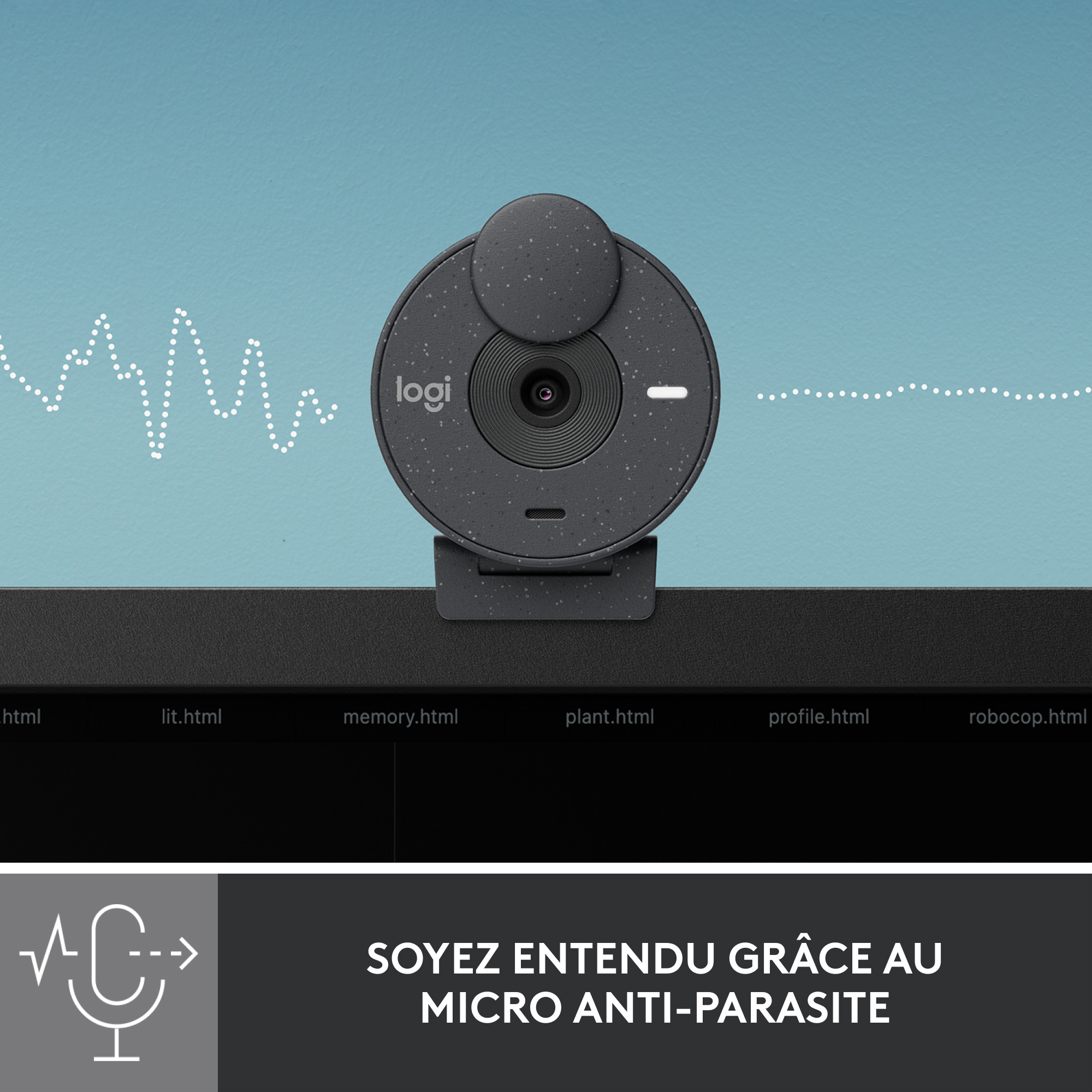 Logitech Brio 300. Mégapixel: 2 MP, Résolution vidéo maximale: 1920 x 1080 pixels, Type HD de la caméra: Full HD. Interface: USB, Couleur du produit: Graphite, Type de montage: Clip. Prise en charge du système d'exploitation Mac: MacOS, Prise en charge d'autres systèmes d'exploitation: ChromeOS. Certificats de durabilité: CarbonNeutral, Forest Stewardship Council (FSC). Largeur: 53,1 mm, Profondeur: 45 mm, Hauteur: 65,6 mm