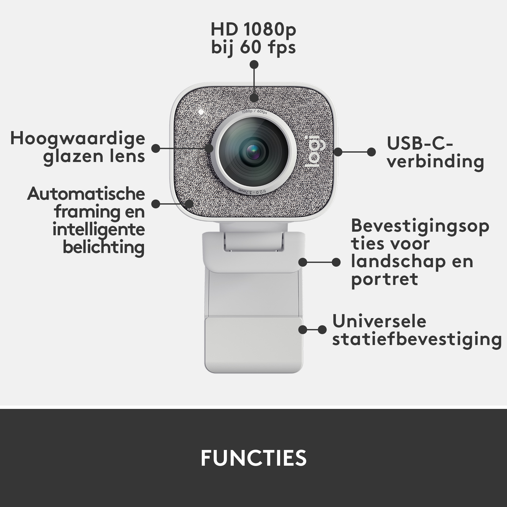 Full HD, 1080p, 60 fps, f/2.0, 3.7 mm, 78°, USB C, USB 3.1, 1.5 m, Blanc, 58 x 48 x 85 mm, 222 g