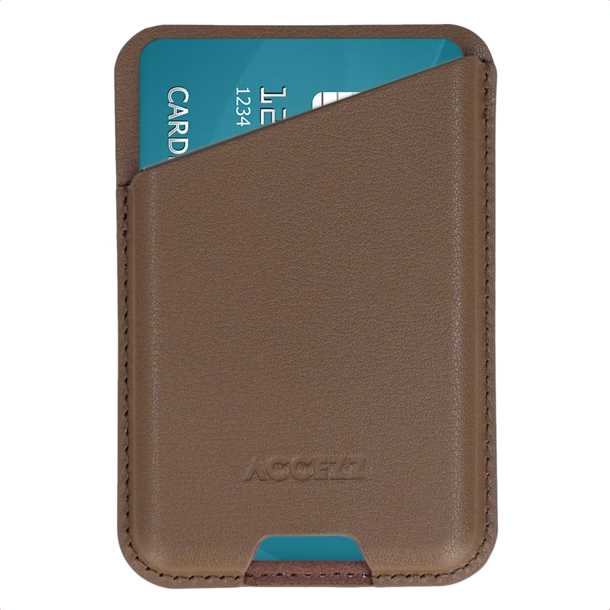 Accezz Magnetic Leather Cardholder - Find My, Portemonnee, Bruin, Echt leer, Coffee Brown, Universeel, Apple iPhone 14/Apple iPhone 14 Plus/Apple iPhone 14 Pro/Apple iPhone 14 Pro Max/Apple iPhone...