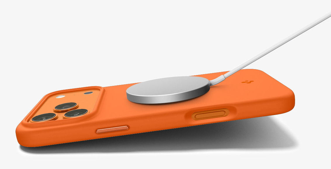 Spigen Silicone Fit (Mag Fit). Type etui: Hoes, Merkcompatibiliteit: Apple, Compatibiliteit: iPhone 17 Pro Max, Maximale schermgrootte: 17,5 cm (6.9"), Oppervlakte kleur: Monochromatisch, Kleur van het product: Oranje