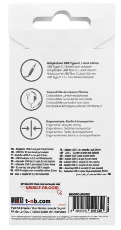 T'nB ADATCJACK2. Aansluiting 1: 3.5mm, Aansluiting 1 type: Vrouwelijk, Aansluiting 2: USB Type-C, Aansluiting 2 type: Mannelijk, Snoerlengte: 0,1 m, Kleur van het product: Zwart