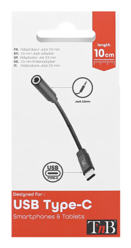 T'nB ADATCJACK2, 3.5mm, Vrouwelijk, USB Type-C, Mannelijk, 0,1 m, Zwart