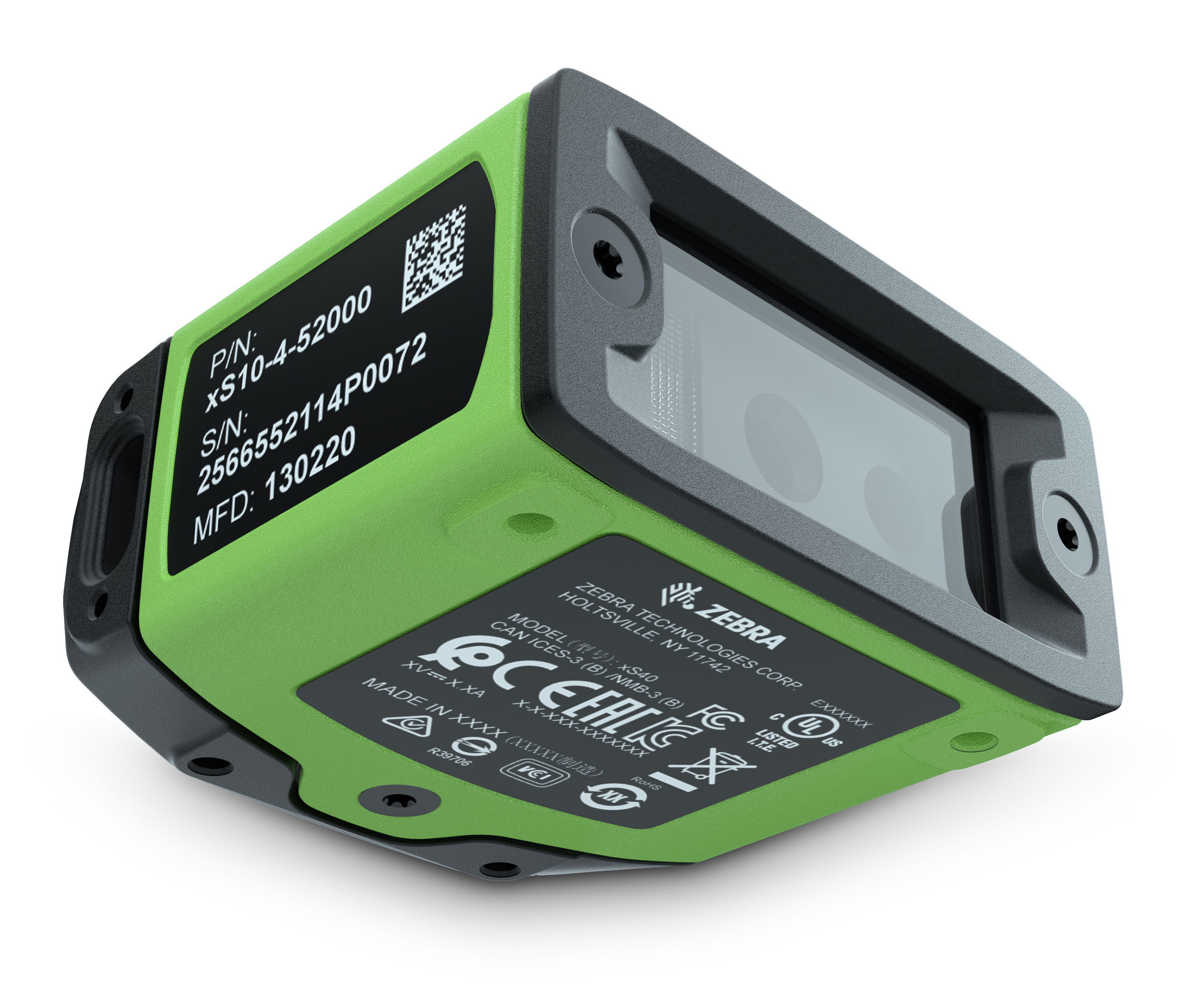 Zebra FS20. Soort: Vaste streepjescodelezer, Soort scanner: 1D/2D, Type beeldsensor: CMOS. Connectiviteitstechnologie: Bedraad, Standaard interfaces: RJ-45, RS-232, Ethernet LAN, data-overdrachtsnelheden: 10,100,1000 Mbit/s. Kleur van het product: Zwart, Groen, Materiaal behuizing: Aluminium, Internationale veiligheidscode (IP): IP65, IP67. Type stroombron: DC, Power over Ethernet (PoE), Stroomverbruik (typisch): 7,5 W, Ingangsspanning: 10 - 30 V. Gewicht: 195 g, Breedte: 54,6 mm, Diepte: 94,2 mm