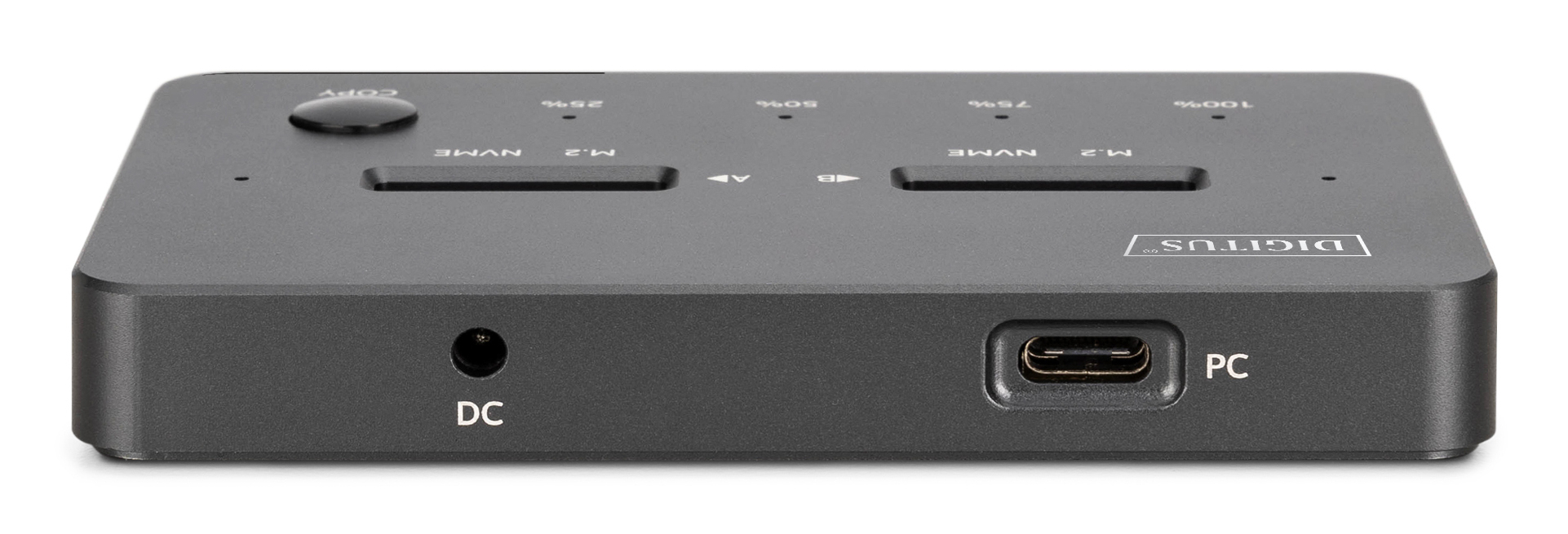 Digitus DA-71545-1. Opslagmedia-type: SSD, Opslag schijf-interface: M.2, Opslagschijf afmetingen ondersteund: M.2. Hostinterface: USB 3.2 Gen 1 (3.1 Gen 1) Type-C. Kleur van het product: Zwart, Max. overdrachtssnelheid: 10 Gbit/s. AC-ingangsspanning: 100 - 240 V, AC-ingangsfrequentie: 50/60 Hz, Ingangsspanning: 5 V. Breedte: 79 mm, Diepte: 77 mm, Hoogte: 18 mm