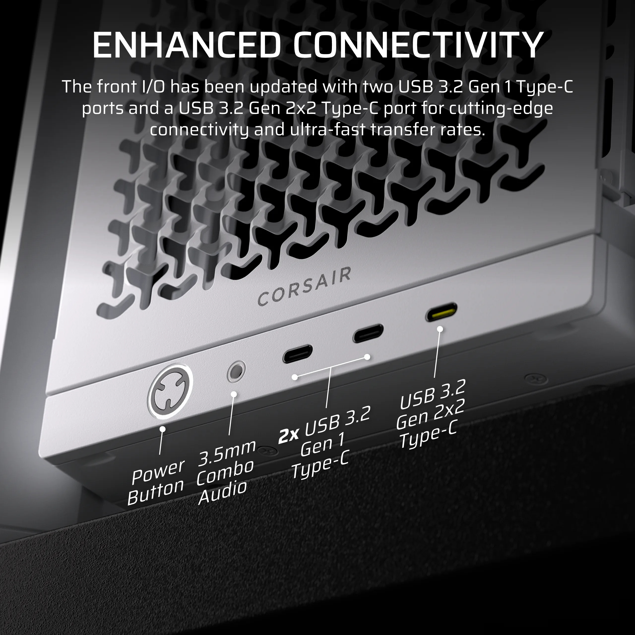 Corsair FRAME 4000D LCD RS ARGB, Midi Tower, PC, Wit, ATX, EATX, micro ATX, Mini-ITX, Kunststof, Staal, Gehard glas, Gamen