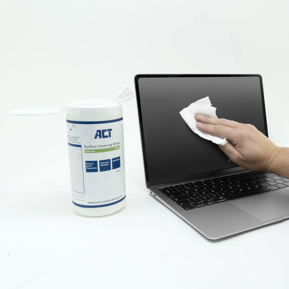 ACT Schermreinigingsdoekjes, 100 stuks, Doekjes voor apparatuurreiniging, LCD/LED/Plasma, Mobiele telefoon/Smartphone, Tablet PC, Wit