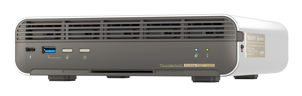 5-bay All-Flash NASbook, Intel Core i5-1235U 10C(2P+8E)/12T up to 4.40GHz, onboard 16GB RAM, 5 x E1.S NVMe 3.84T, 1 x 10GBASE-T + 1 x 2.5GbE, 1 x HDMI 1.4b, 2 x USB 3.2 Gen2 Type-A + 1 x USB 2.0, 2 x Thunderbolt 4