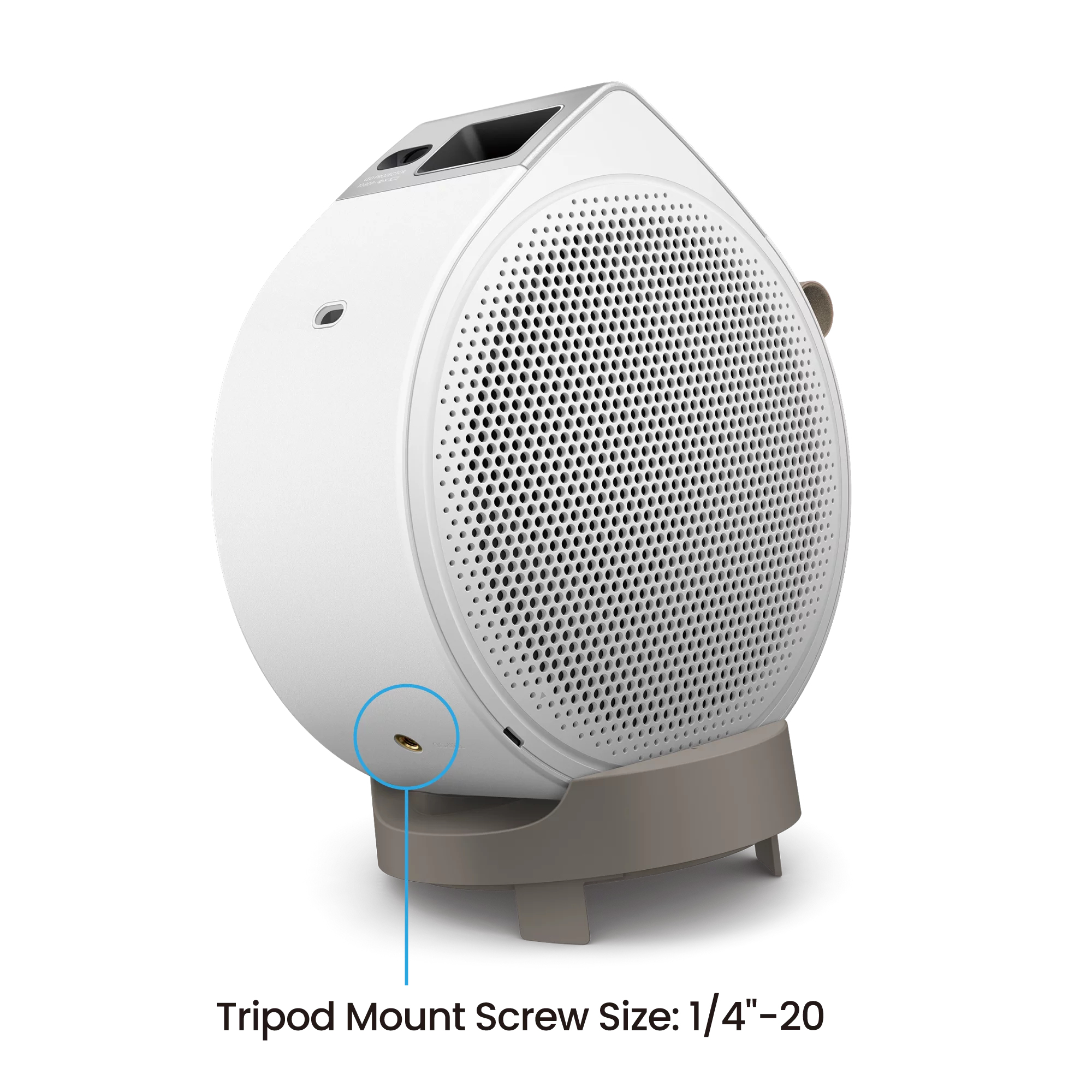 Draai het projectorhuis moeiteloos met 135° verticale aanpassing direct vanaf de stabiele voet. Zo switch je eenvoudig van projectie op de muur naar het plafond.